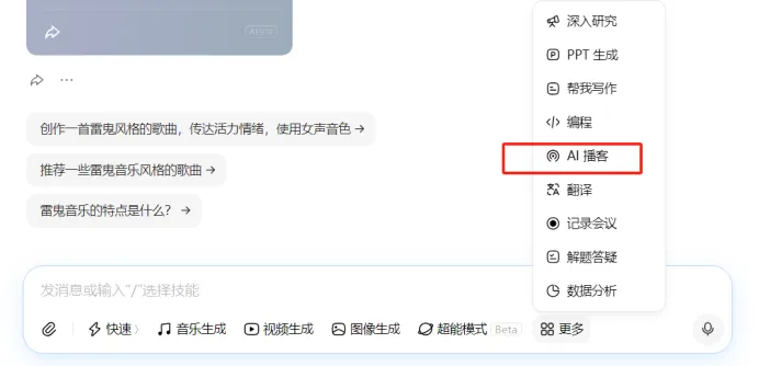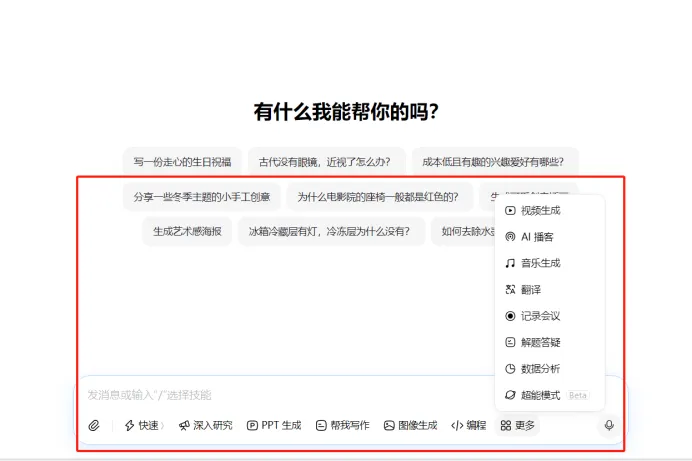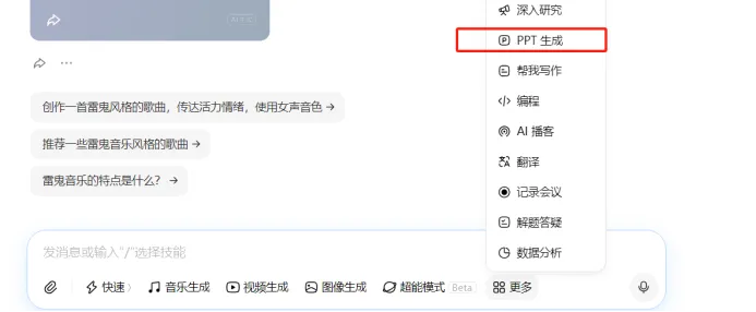 - 功能可组合使用:比如先“深入研究”写论文,再“生成PPT”做汇报,最后“AI播客”转音频;