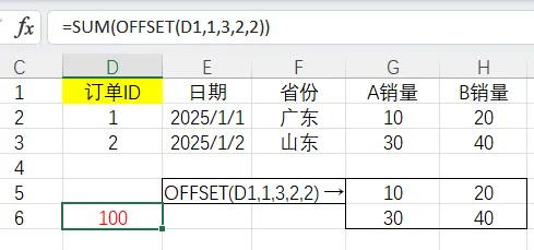 1.偏移量,和最终引用的区域都是先写行数,再列数。