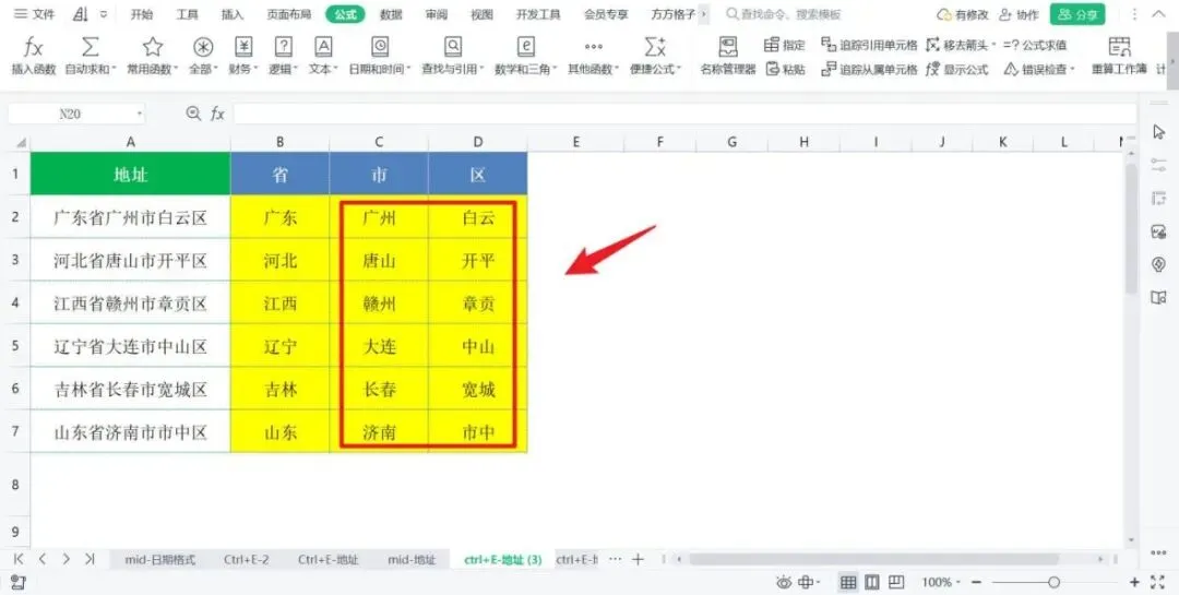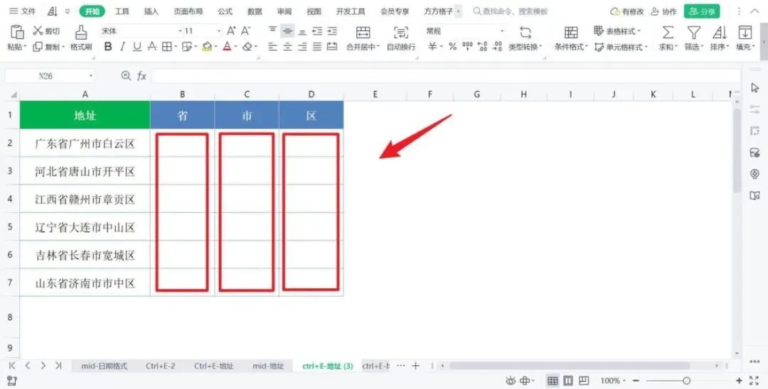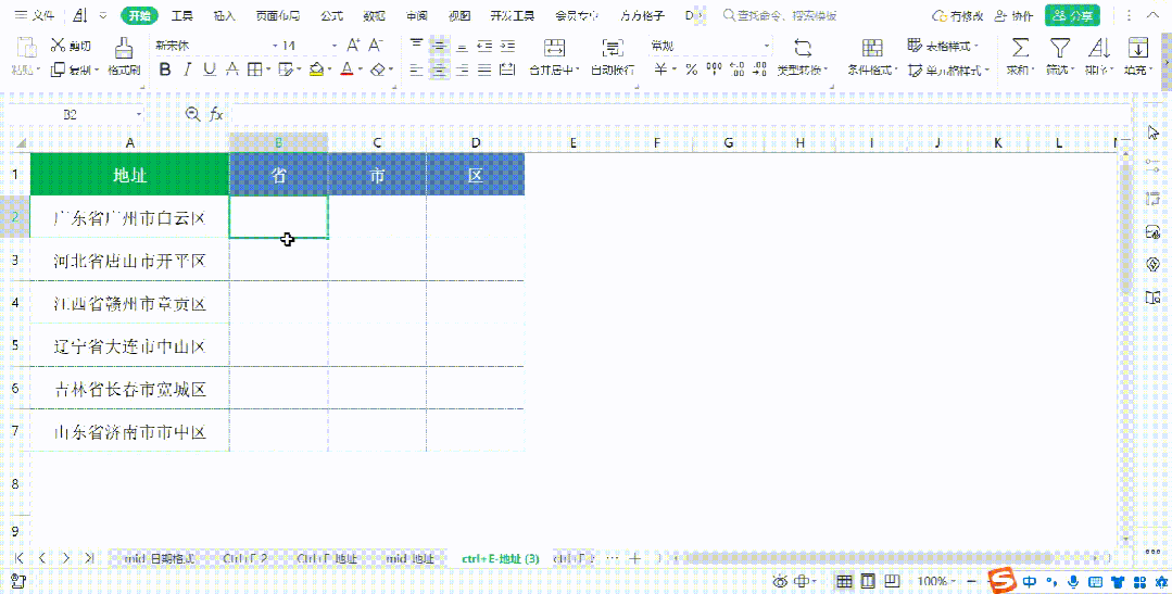 一、Ctrl+E:智能填充,一键搞定地址信息抽取