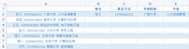 同样地,如果想要提取地址,只需在地址列的第一个单元格中输入对应的地址并按下Ctrl+E组合键即可实现一键批量提取。这一技巧对于处理大量包含复杂信息的文本数据特别有效,如从日志文件中提取关键信息、从订单数据中提取客户联系方式等,让数据提取变得轻松又快捷。