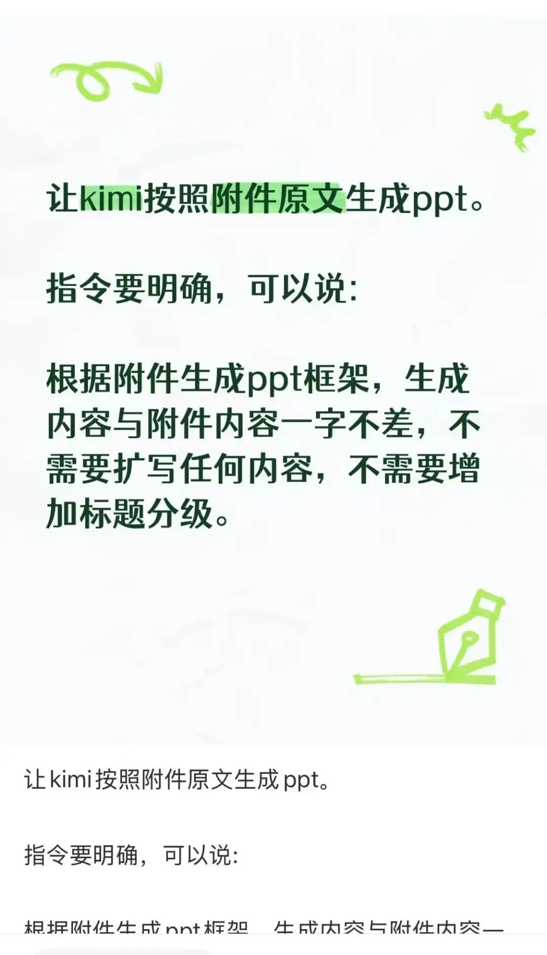 我于是在某书上搜索了一下“kimi、PPT、保留原内容”,哈哈,果断跳出了一堆攻略。原来就是要给Kimi严格明确的指令,让它不要随意拓展。