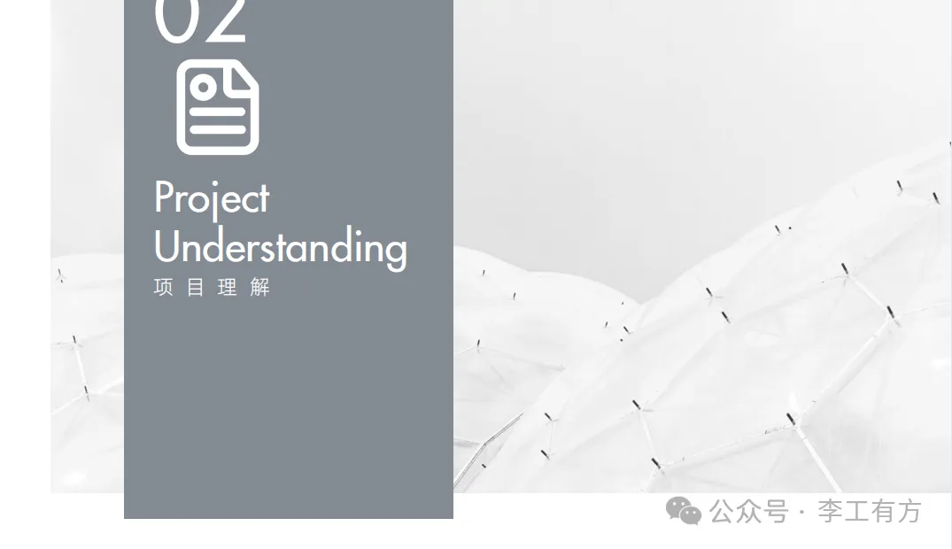 PPT的制作虽然目前可以借助AI的形式来生成,但是仍然需要指定合理的提纲和审核AI形成的文件,就本人观点,最好是自己编制,编制的同时在熟悉和梳理这个项目,只有这样在述标的工程中才可以做到游刃有余。这一章主要说明述标PPT需要包含的内容,由于篇幅的问题,每个标题下涵盖的内容将在下一篇中重点展开,比如说项目概况部分的侧重点,难重点的部分侧重点等等,请期待下一篇:述标PPT的重点把控内容。