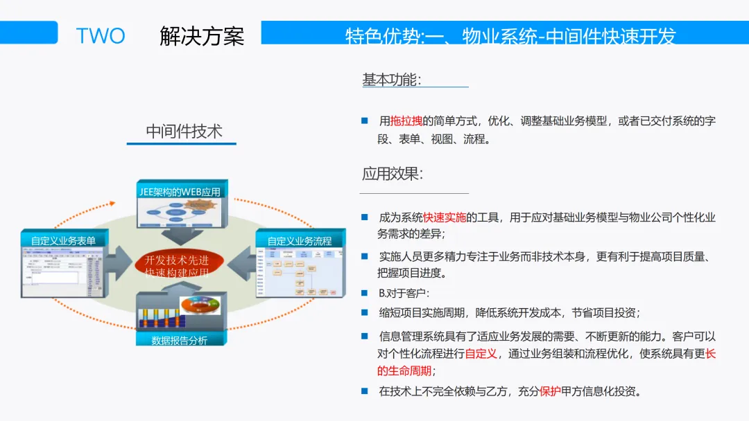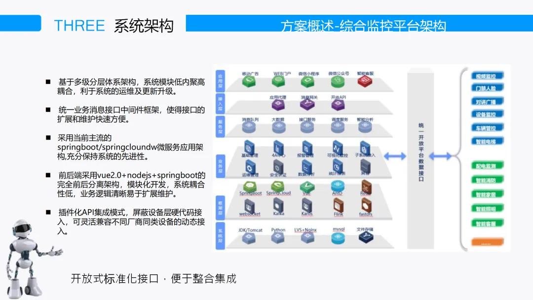 本方案面向传统物业企业面临的服务效率低下、盈利模式单一、信息传达滞后、社区互动缺失、周边商业融入难等系统性痛点,以“以人为本、服务优先、数据驱动、智能运营”为核心价值导向,系统构建覆盖物业管理核心业务、综合监控与智能硬件、社区增值服务三位一体的智慧物业运营平台。方案以Spring Cloud微服务架构、前后端分离、可视化流程引擎、插件化设备集成平台为技术底座,实现物业系统与视频监控、人脸门禁、车辆管控、智能电梯、消防监测等十余类物联终端的无缝对接,打通业务流与设备数据流。在物业数字化管理层面,方案构建以矢量化房态图为核心的资产经营体系,实现房产资源、客户档案、招商租赁、财务稽核全链路线上闭环。收费模块支持价税分离、多口径收缴率统计、税控系统直连与财务软件一键导出,有效解决物业费收缴难、对账繁的长期顽疾。客服调度平台集成呼叫中心来电弹屏、工单逐级预警、维修APP抢单派单,实现“报修—派工—处置—回访”全流程可追溯、超时自动升级督办,服务响应效率提升50%以上。在综合监控与智能安防层面,平台将传统安防资源向业主开放延伸,公共视频、可视对讲、人脸识别门禁、无人值守停车、智能充电桩等系统统一纳管,支持业主手机端实时查看老人小孩动态、访客远程授权、车位引导与反向寻车,变封闭式安防为可视化安心服务。通过3D电子地图与室内地图融合,实现设备状态、报警点位、人员轨迹一图可视、一键联动。在社区增值与大数据运营层面,业主APP整合基础缴费、报事报修与B2C/B2B2C社区电商,引入专业运营团队构建自营与联营结合的智慧生活生态圈。平台沉淀人、车、消费、行为等多维数据,分阶段推进用户画像、智能推荐与AI模型训练,实现从“人找服务”向“服务找人”跃升。方案采用“基础平台—数据沉淀—AI挖掘”三步走实施路径,助力物业企业从成本中心转型为社区流量入口与区域增值中枢,重塑品牌价值与可持续盈利能力。