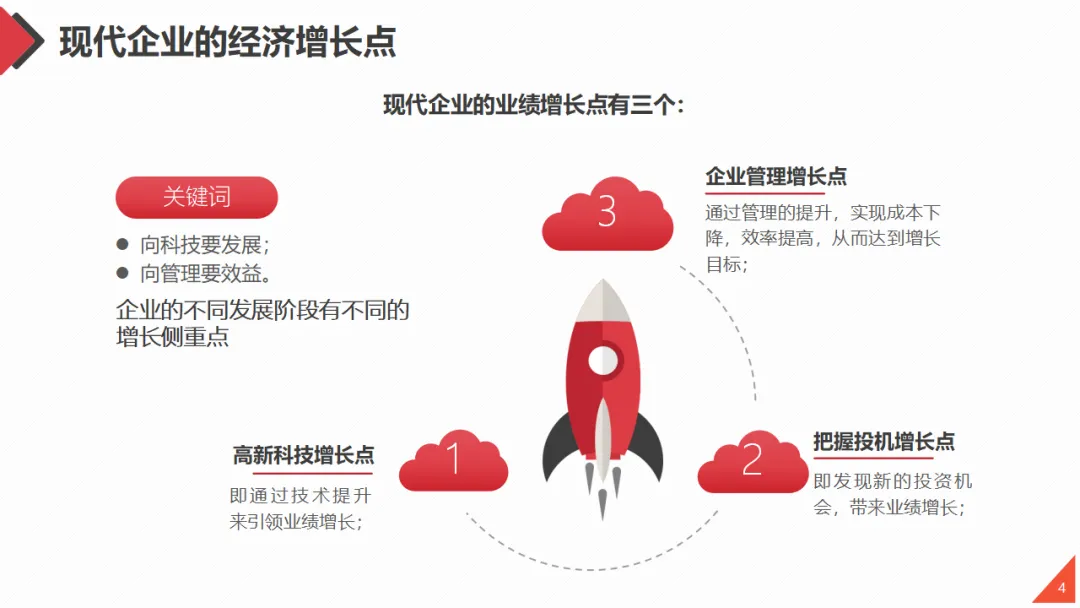 通过管理的提升,实现成本下降、效率提高,从而达到增长目标。