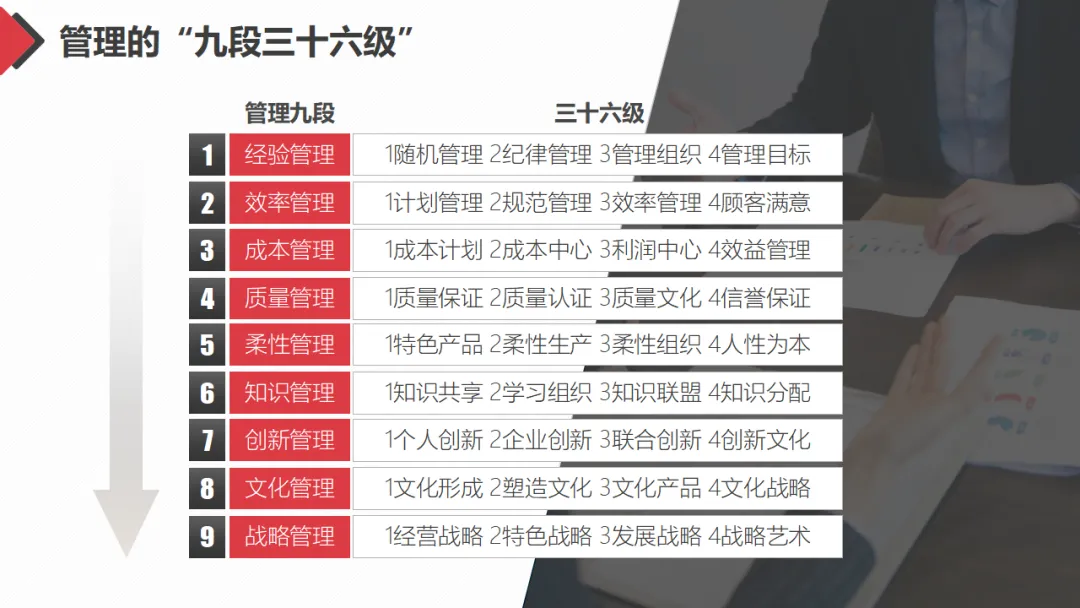 管理不是一蹴而就的,它有其发展阶梯。了解管理的"九段三十六级",有助于我们明确自己目前所处的位置,以及未来提升的方向。