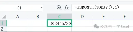 如下图所示,我们需要计算当前日期之后1个月的最后一天的日期。在单元格中输入以下公式:
