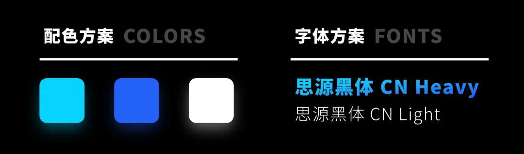 我们随便挑一组,就是不错的科技风配色,再搭配上科技风常用的黑体,就可以形成一套大概的设计规范: