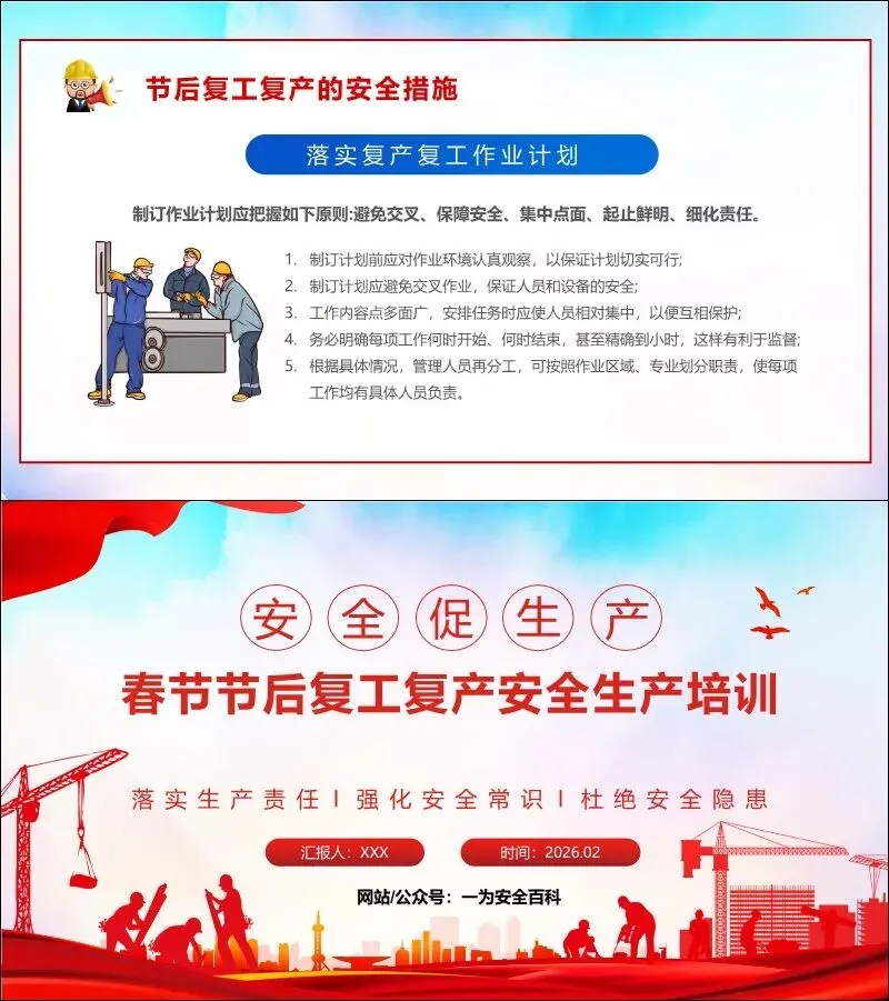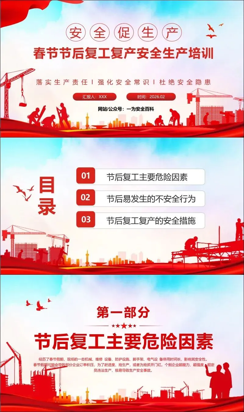 【PPT】春节节后复工复产安全生产培训课程内容介绍: