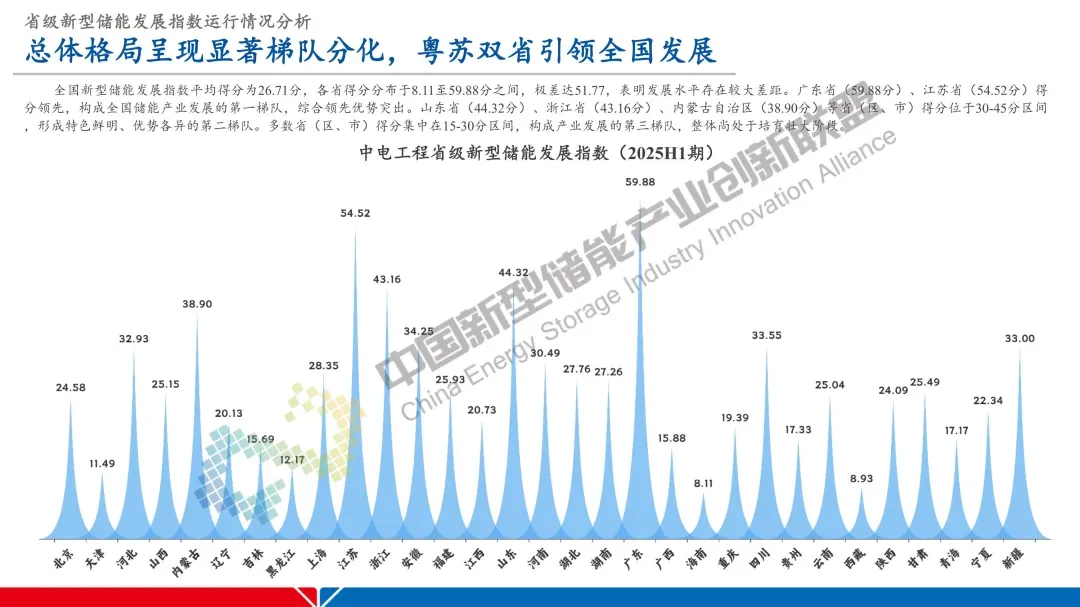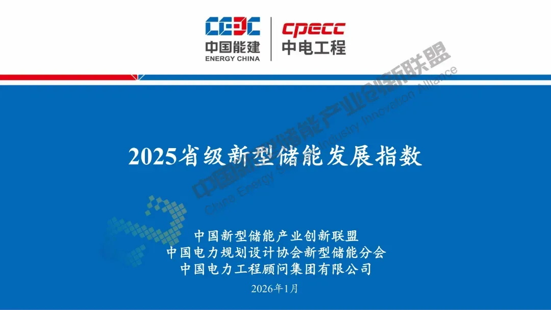 2026年1月27日,在新型储能行业2025年发展回顾与未来形势展望交流会上,中国能建中电工程新型储能研究院院长戚宏勋发布了2025年省级新型储能发展指数,为各地新型储能发展提供量化参考。