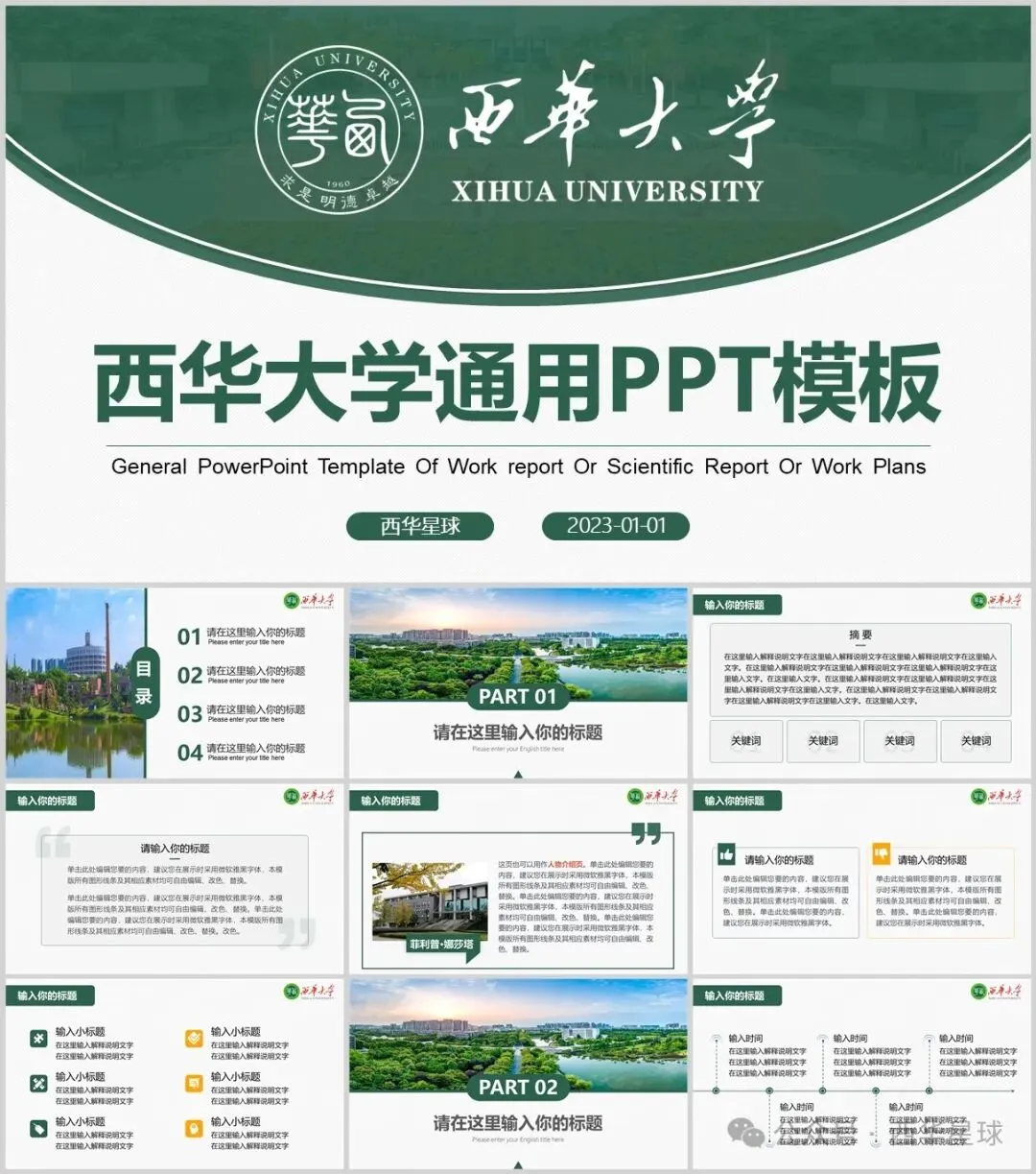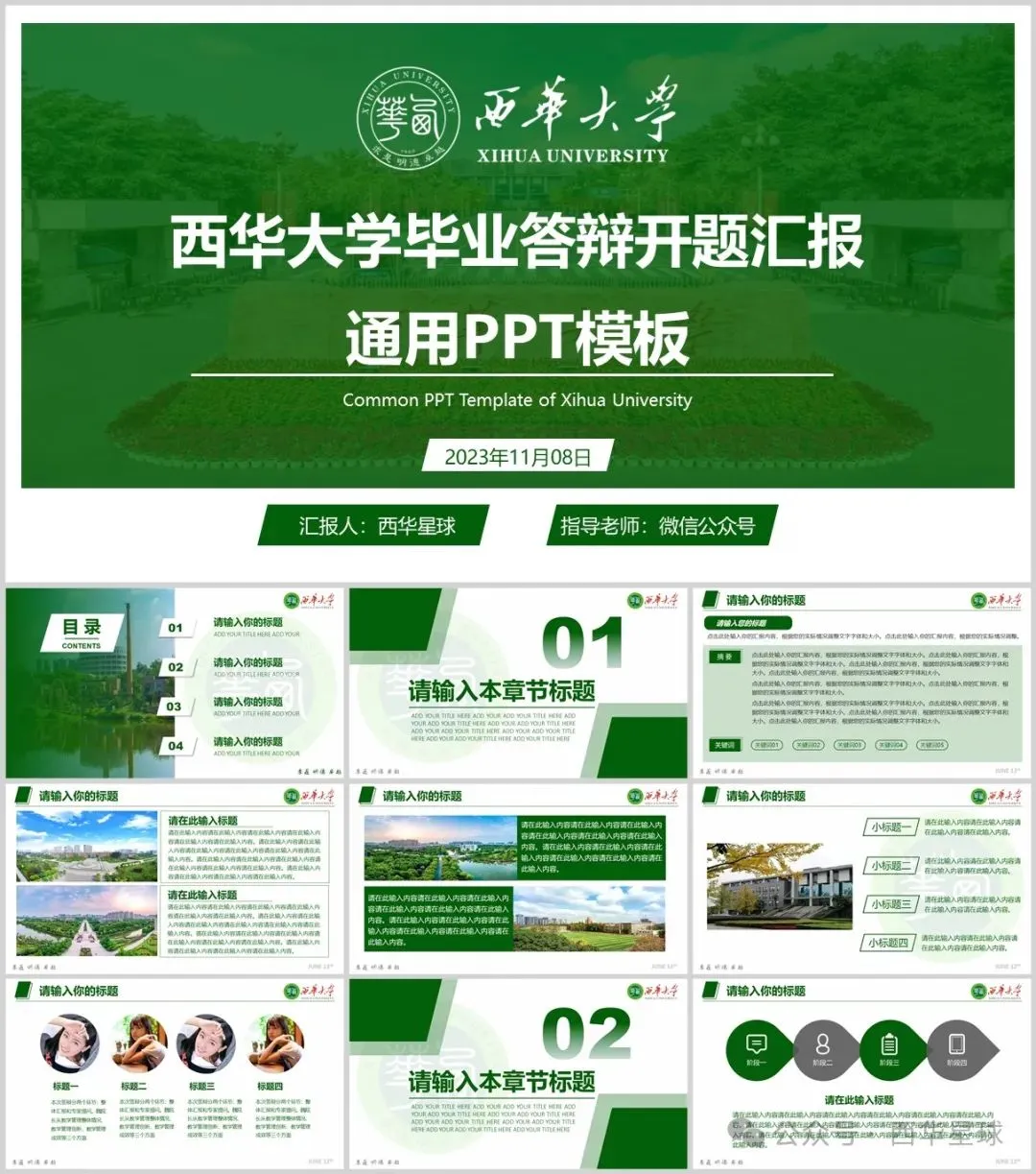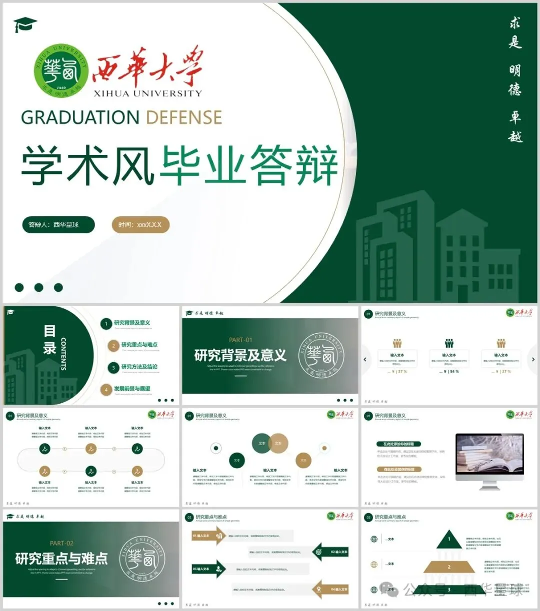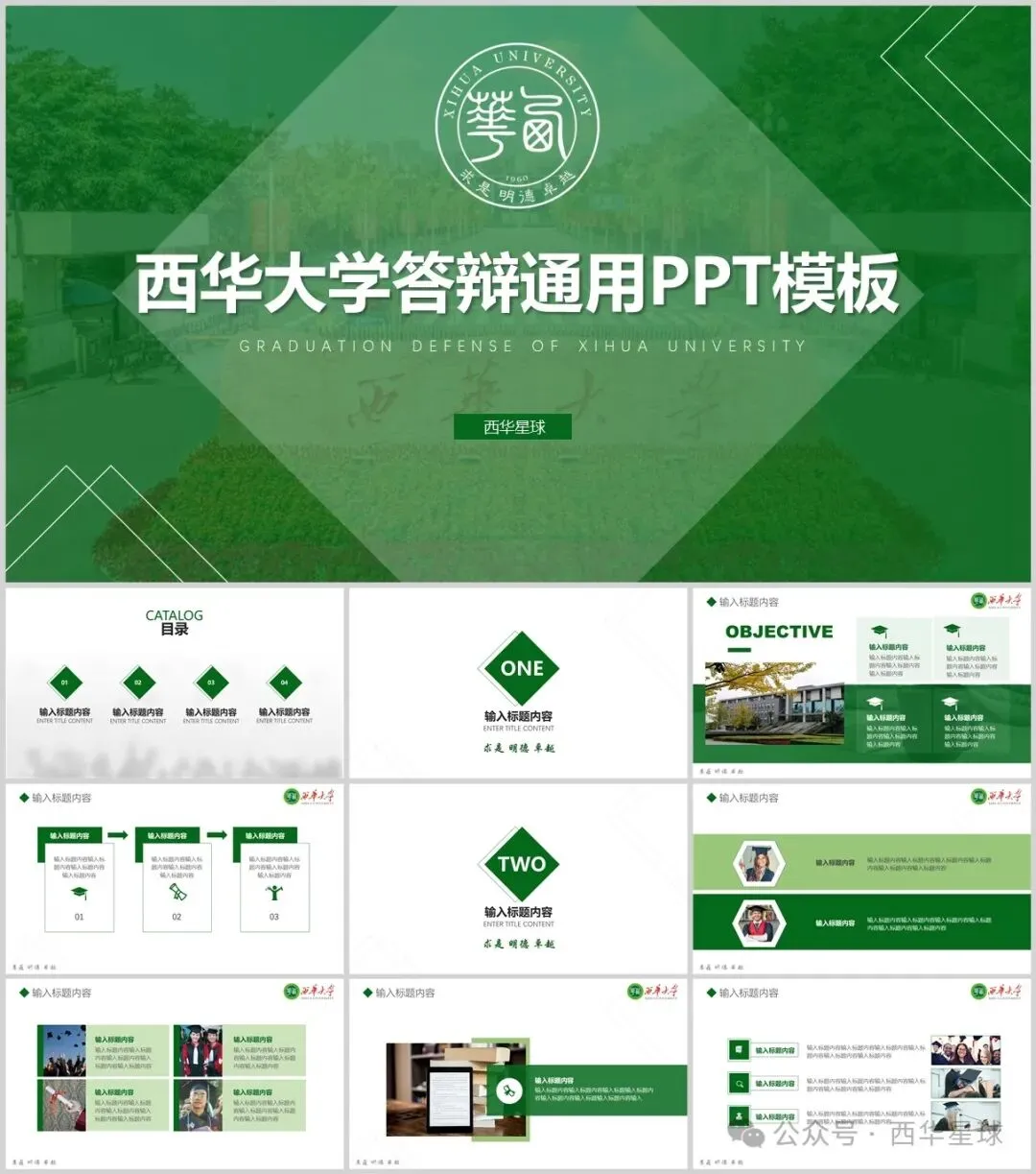 “西华大学”专属PPT模板来啦,本硕博汇报答辩必备!