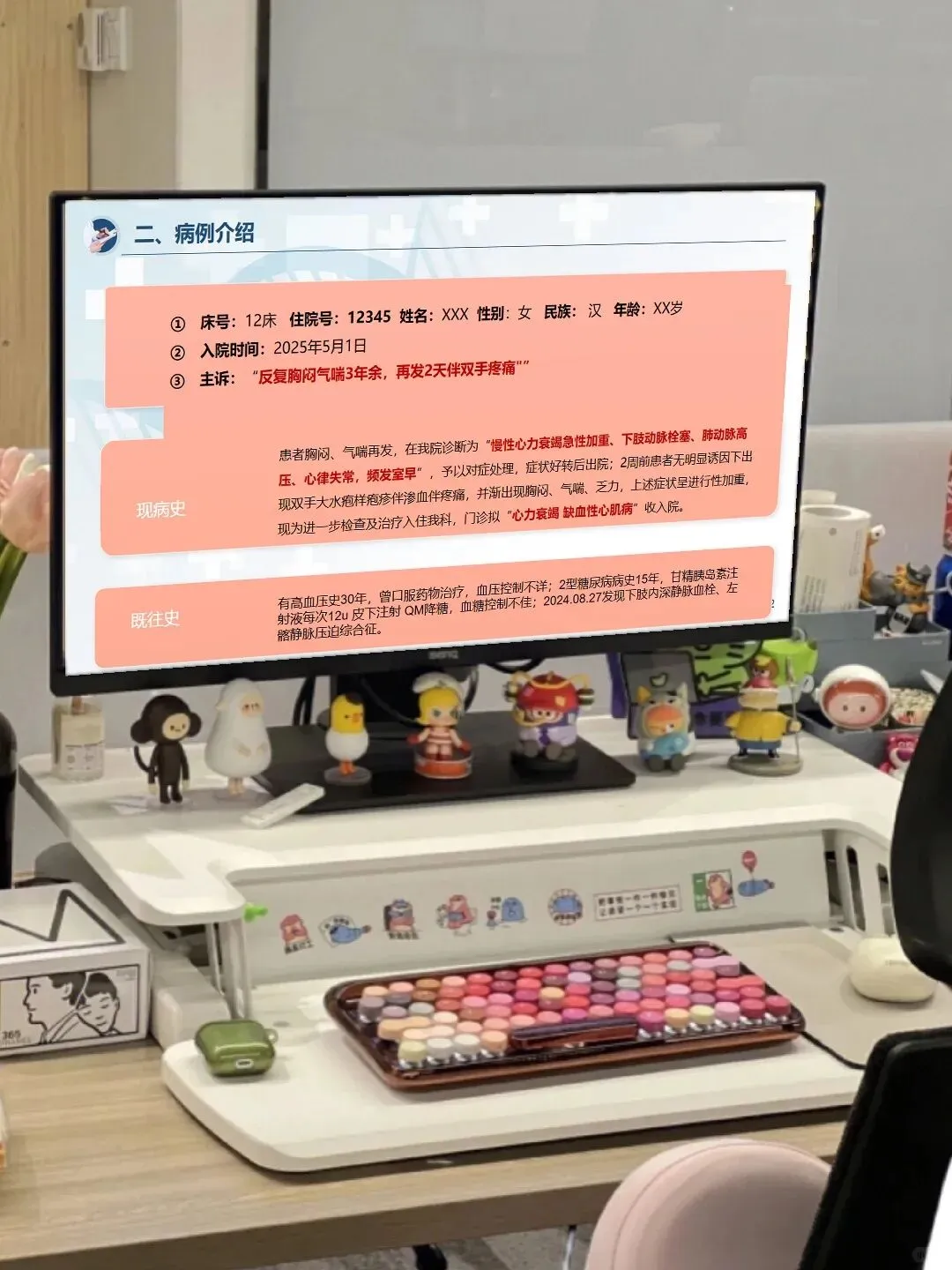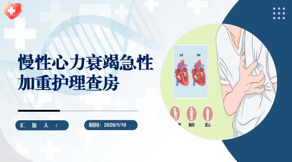 各位同仁,今天我们围绕慢性心力衰竭急性加重开展护理查房,一起复盘病例、梳理护理要点、总结实操经验。慢心衰急性加重起病急、并发症多,护理工作容不得半点马虎,这次查房就是把临床中的护理重点、难点捋清楚,把实用的护理方法攒下来,让大家后续面对这类患者时,护理工作做得更扎实、更精准。
