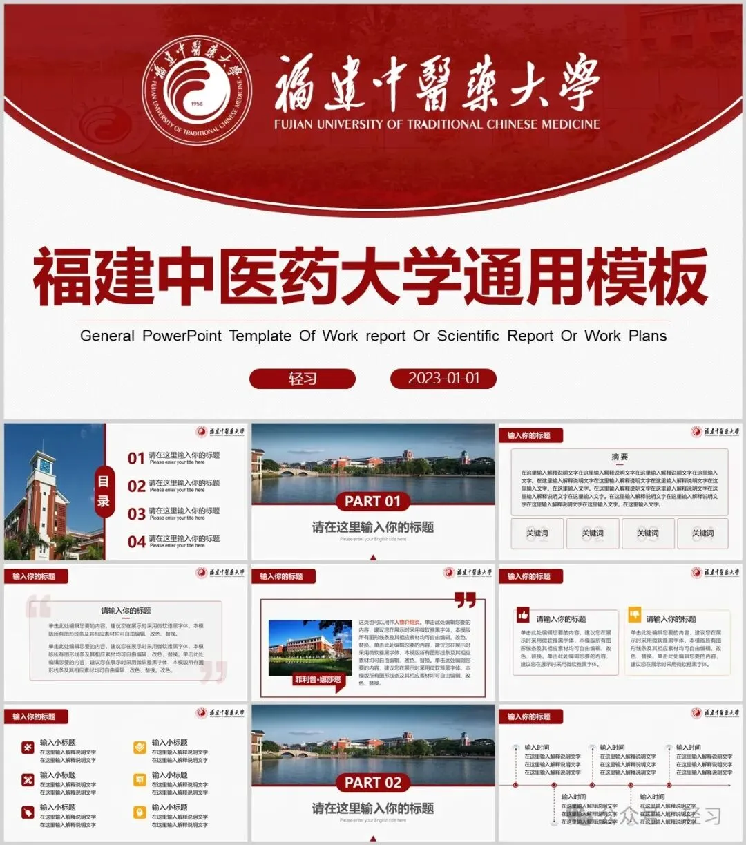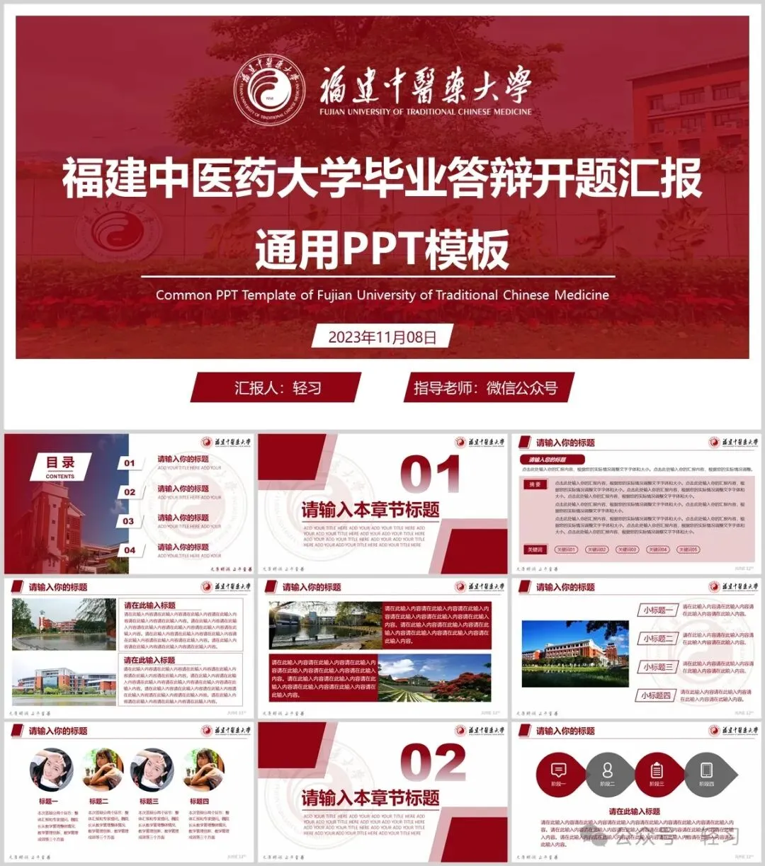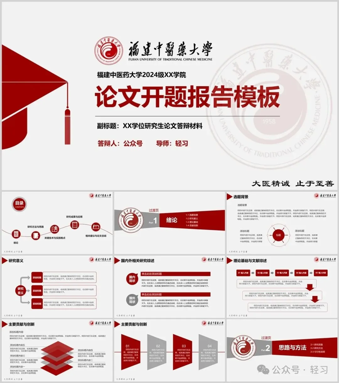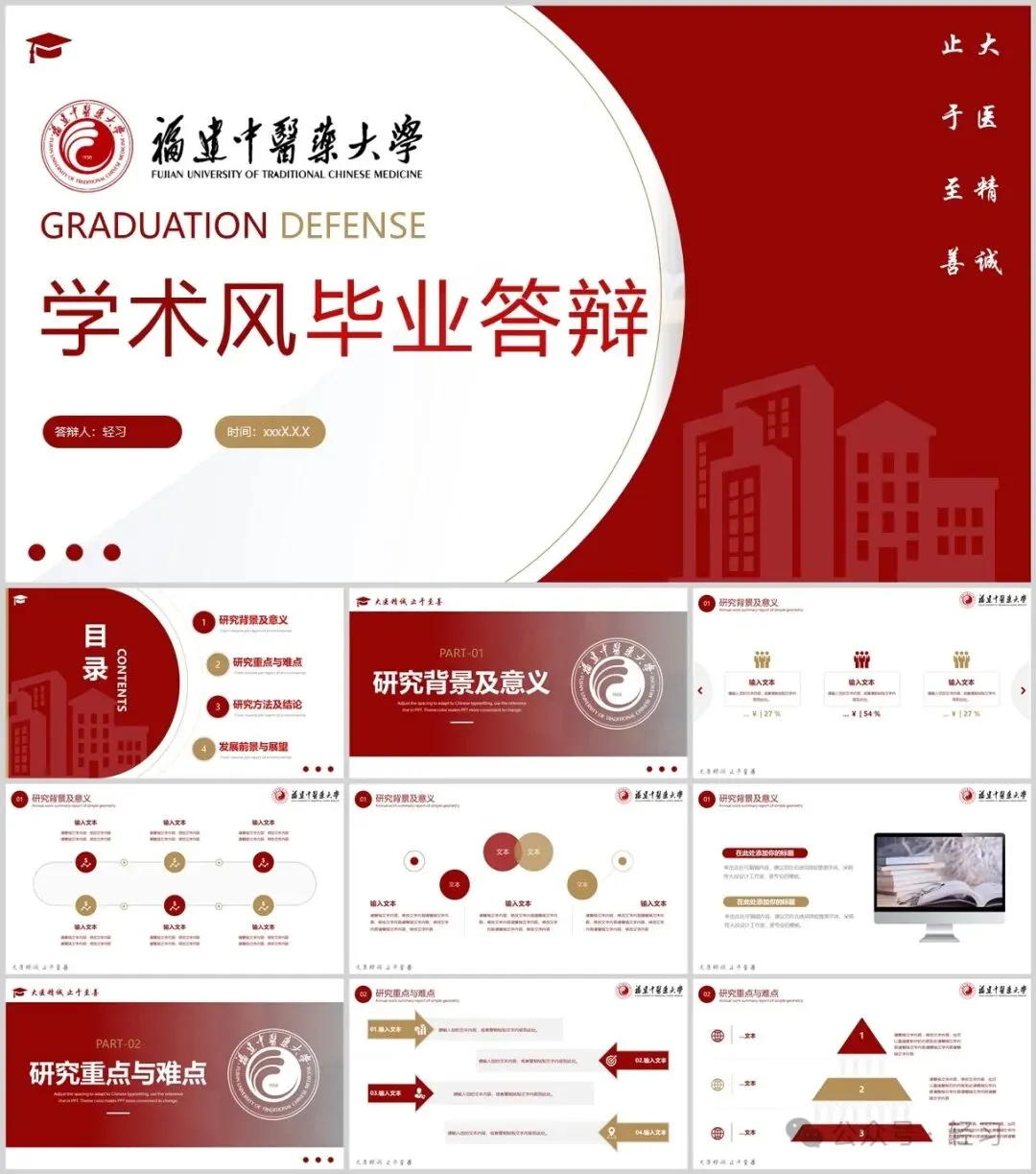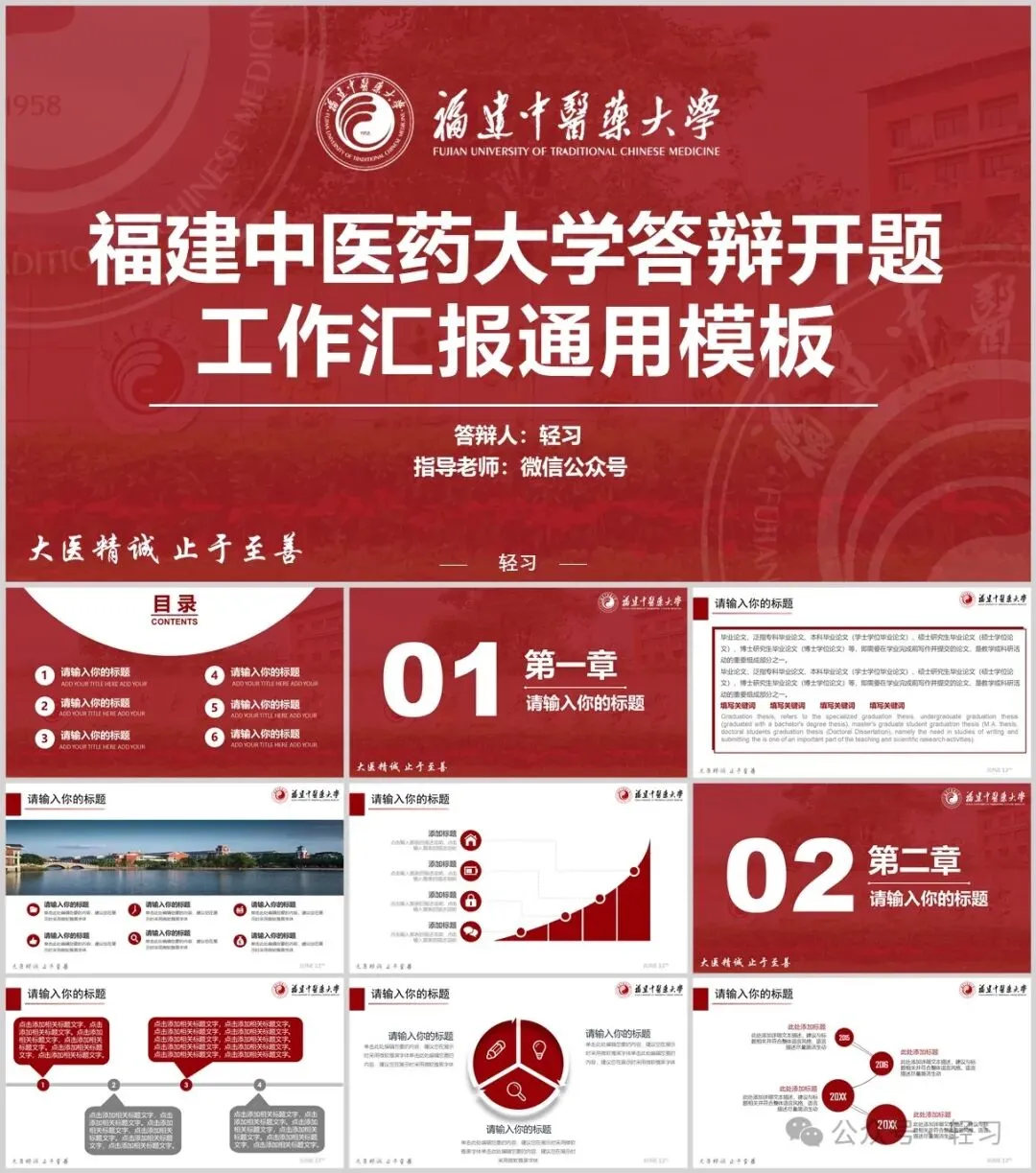 “福建中医药大学”专属PPT模板来啦,本硕博汇报答辩必备!