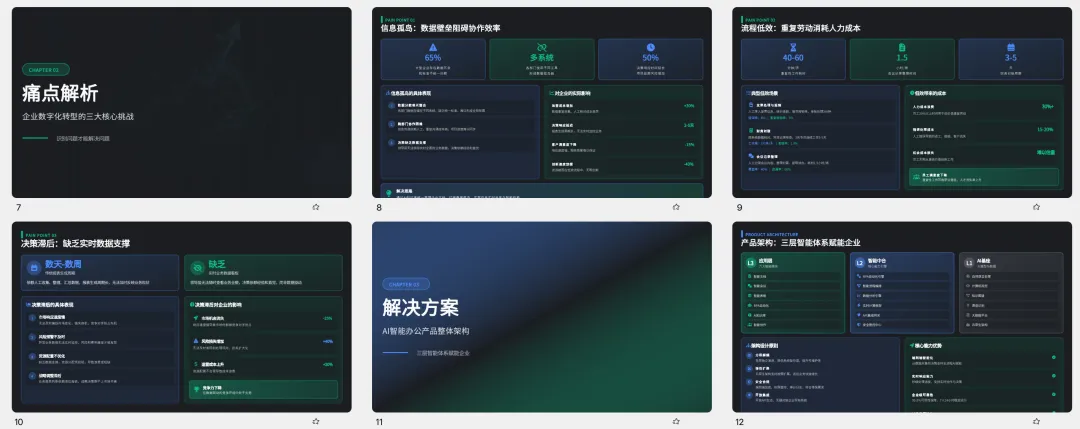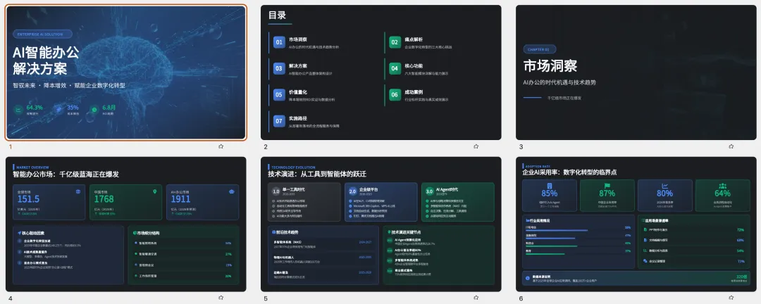 不是那种随便列个123糊弄你的,是真有逻辑线的:行业痛点→产品架构→核心功能→客户案例→ROI对比→合作方案。