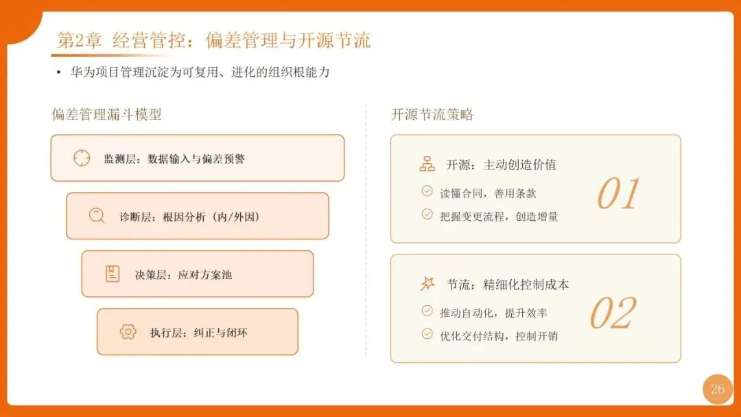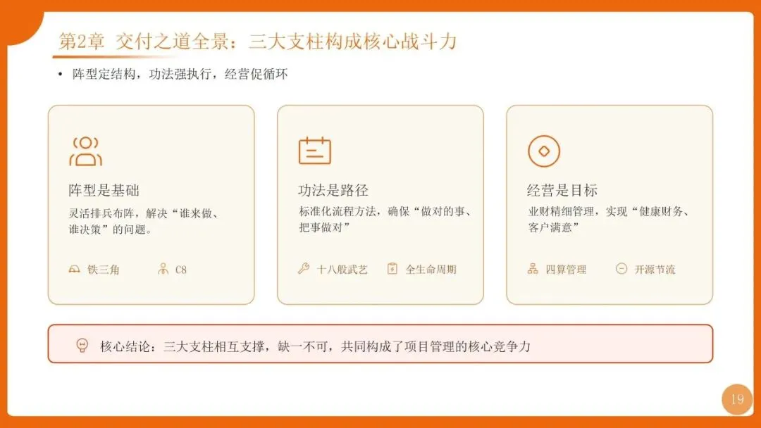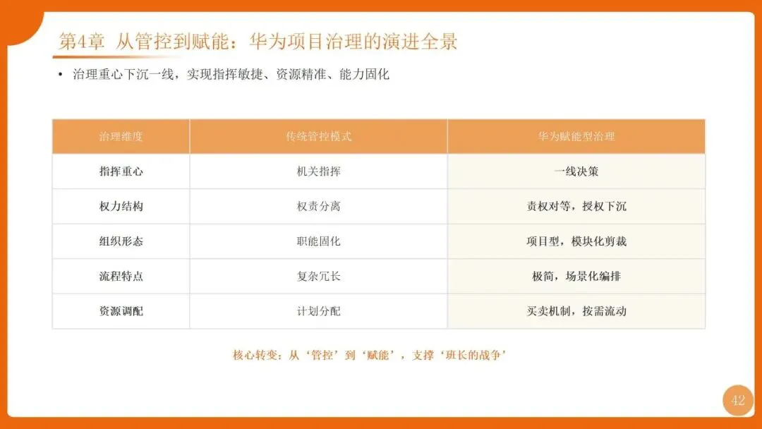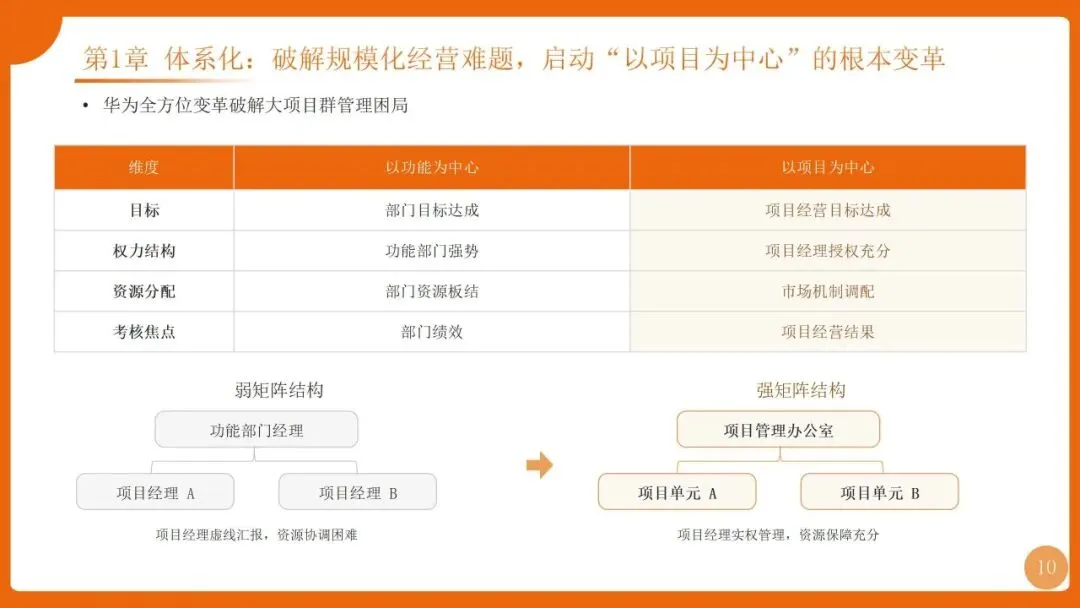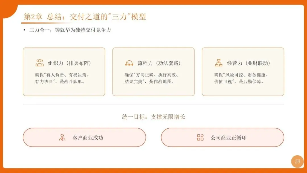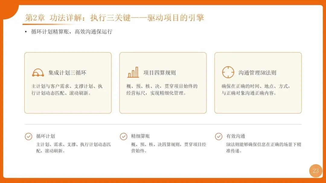 | 项目管理是华为“根能力”,以“以项目为中心”为核心,实现从“任务执行”到“价值创造”的转变,聚焦价值循环与商业成功 | 筑牢发展根基,保障“使命必达”,支撑企业长期稳健增长 |