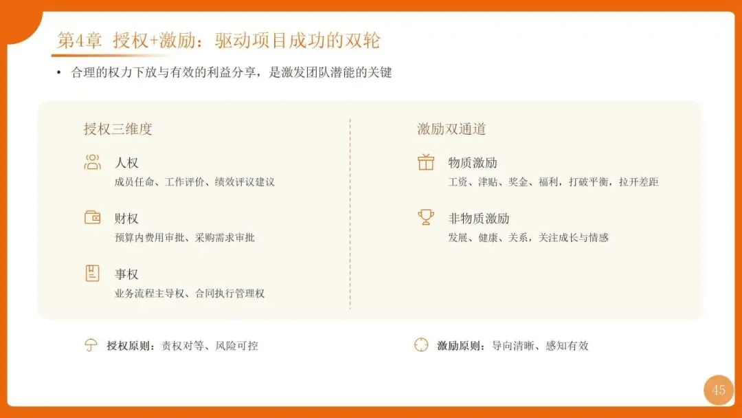 | 授权激励(人权+财权+事权)、资源“买卖”机制、业财联动(概预核决四算)、“四次握手”价值对齐 | |