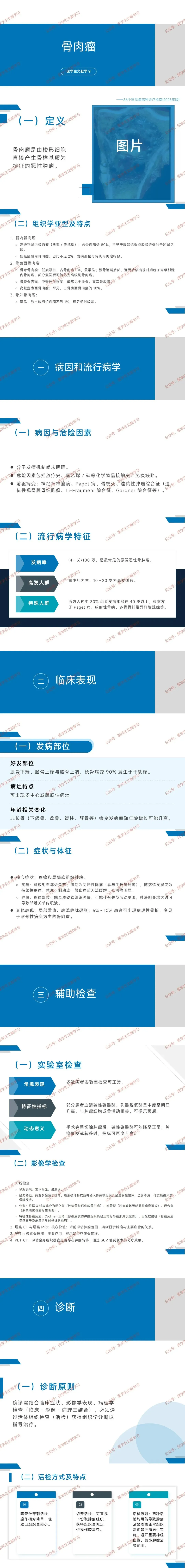 - 定义:由梭形细胞直接产生骨样基质的恶性肿瘤,以成骨活动为典型特征。