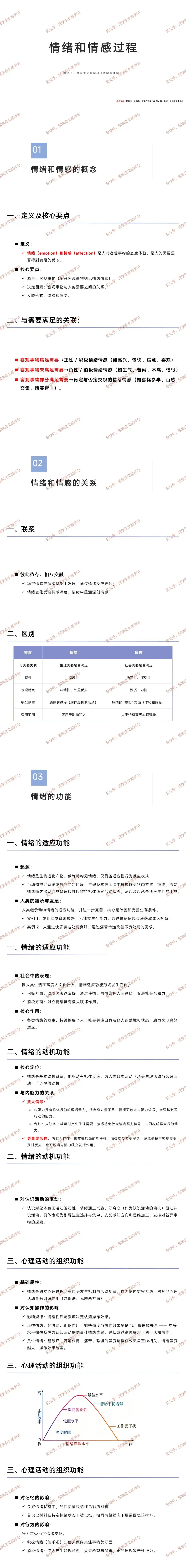 - 组织功能:对其他心理活动起促进或瓦解作用,正性情绪协调认知操作(中等愉快唤醒效果最佳),负性情绪破坏操作(强度越大效果越差);影响记忆与行为倾向。