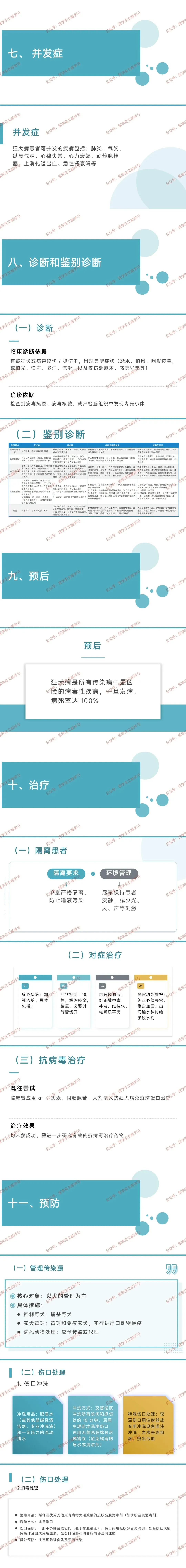 - 临床诊断:依据患者有被狂犬或病兽咬伤、抓伤史,且出现恐水、怕风、咽喉痉挛等典型症状,或有怕光、怕声、多汗、流涎及咬伤处麻木、感觉异常等表现。