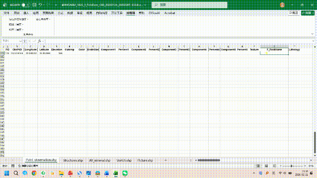 字典的用途,是在Point_observation.shp表、Structures.shp等表格里,统一使用 Rock 表里的标准名称例如在野外观察点表中,通常会有诸如 F_RockName(现场定名)、RockName_1 / RockName_2 / RockName_3(样品定名)等字段——这些字段就可以通过「从字典里选」的方式填写,保证与 Rock 表中的 RockName 一致,避免手误和命名不统一。