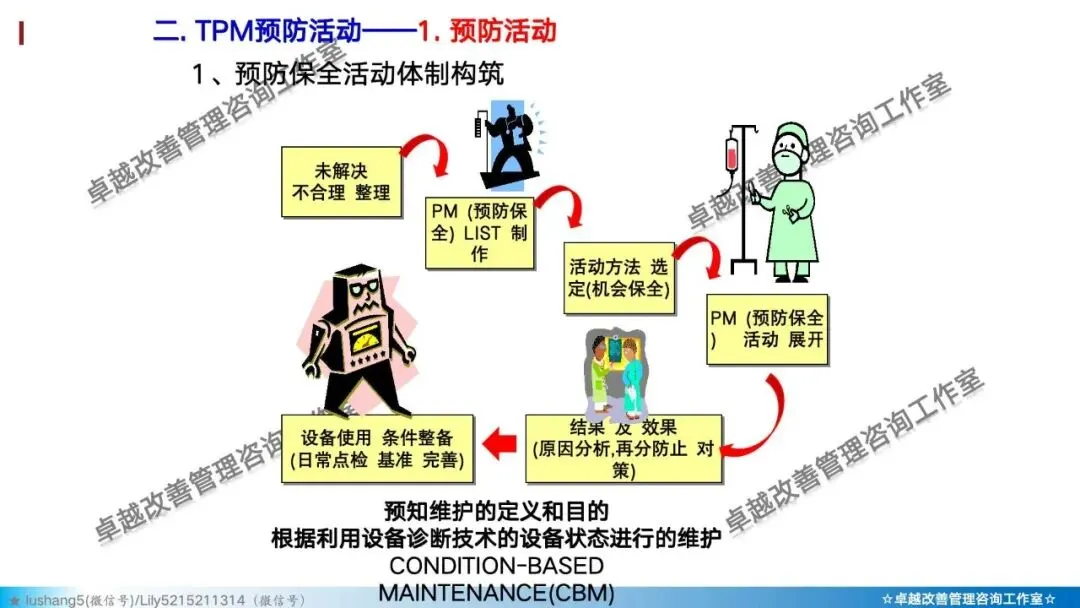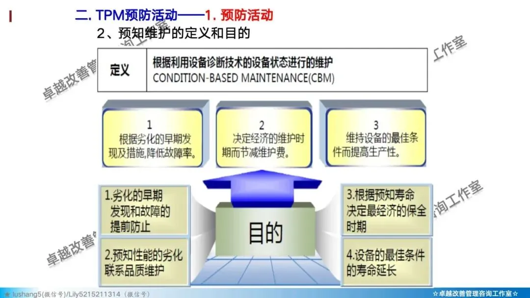 预防保全是计划保全中最核心的思想。它是一种主动干预的策略,旨在通过定期或预知的手段,在设备发生故障前就采取行动,从而延长设备寿命,避免生产中断。我们之前聊过的自主保养,也是预防的一种基础形式。