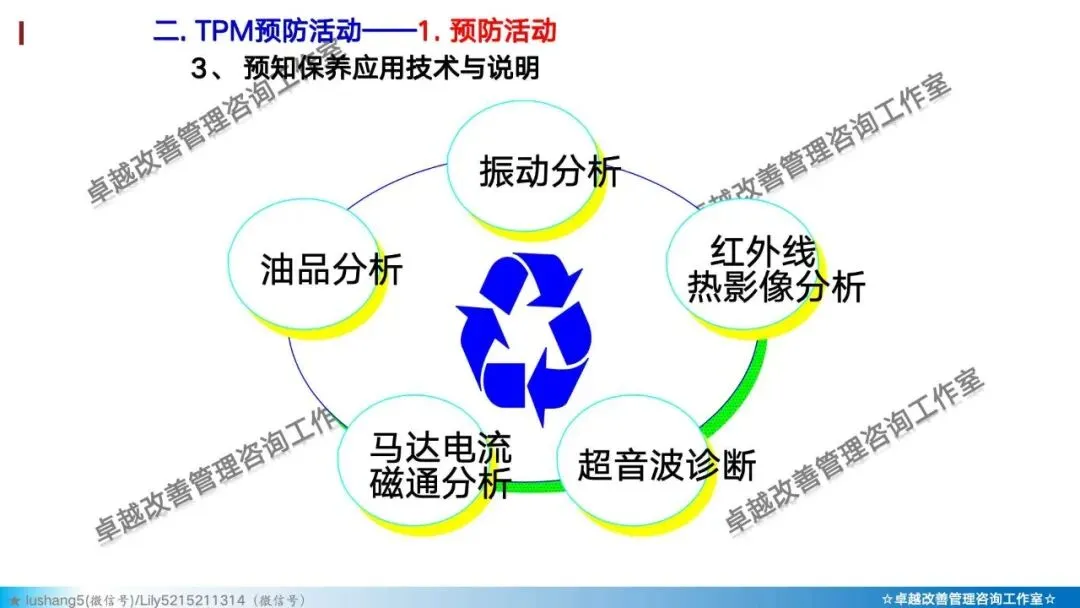 · 预知保全:通过振动、温度等监测技术,在设备故障前进行最合适的维修,比定期保全更精准。