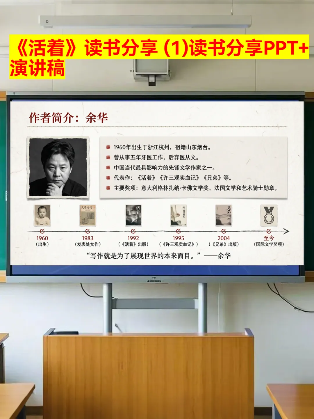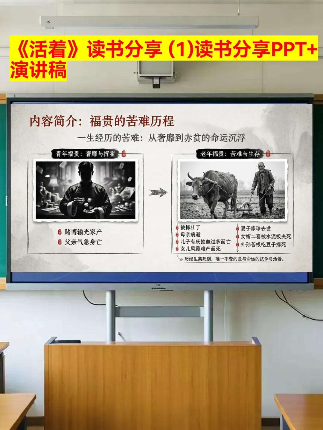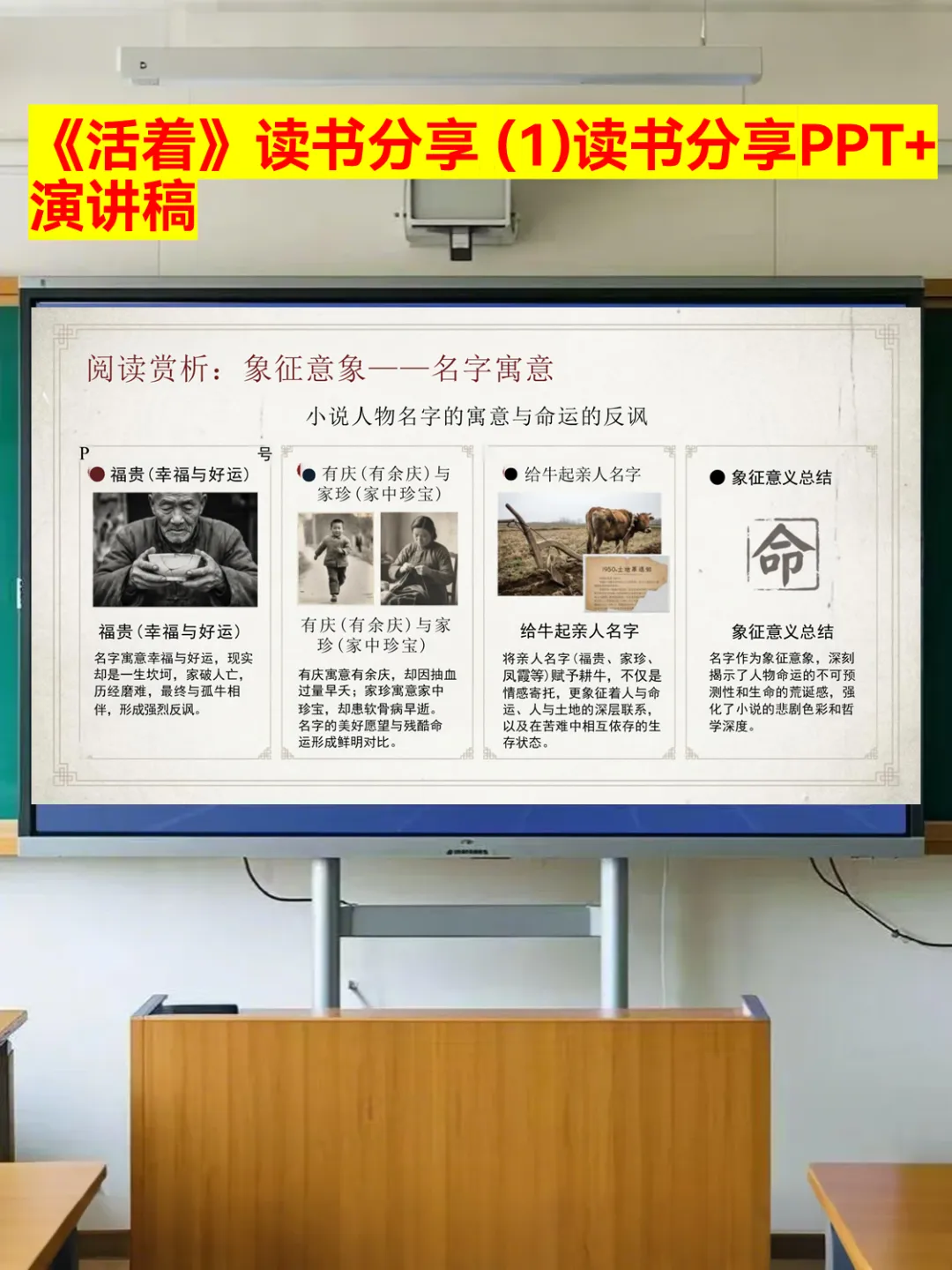强烈推荐这份《活着》读书分享PPT!涵盖故事梗概、时代背景、叙事技巧、主题解读,从福贵的人生沉浮到“活着”的深层意义,层层递进。还有电影改编对比和经典语录赏析,不管是备考还是日常读书分享都超实用~ 关键词:《活着》希望与苦难、读书PPT、余华作品、文学分享、读书干货 #活着 #余华作品 #读书PPT #苦难与希望 #文学分享 #读书干货 #经典小说 #生命意义 #读书汇报 #阅读赏析
