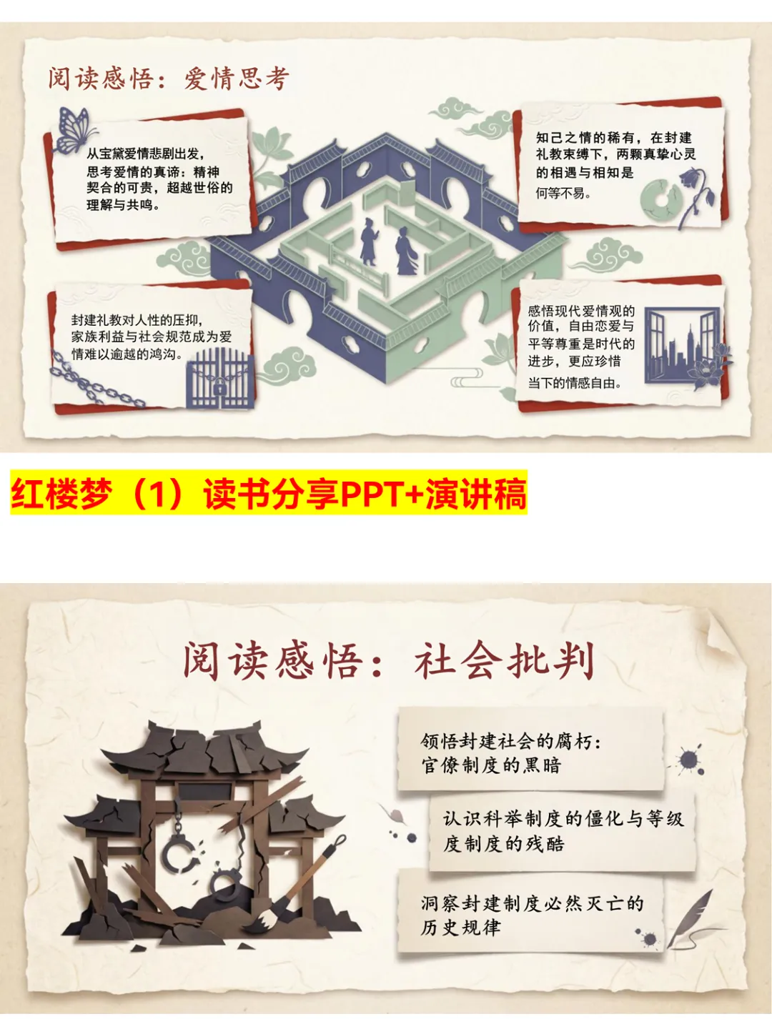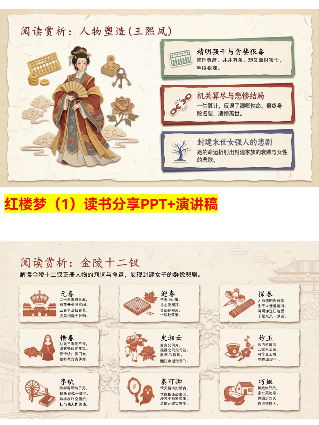 想系统了解《红楼梦》?这份PPT绝对值得收藏!详细梳理了神话缘起、木石前盟的核心设定,拆解了贾府的家族结构和封建末世特征,还对宝玉、黛玉、宝钗等经典人物进行了精准塑造分析。从抄检大观园的转折到家族覆灭的结局,从诗词鉴赏到象征意象解读,干货满满,帮你理清脉络,读懂书中的反封建精神和女性悲剧命运~ #红楼梦深度解析 #读书分享PPT #四大名著解读 #古典小说 #红楼梦人物 #名著干货 #文学赏析 #红楼梦结局 #读书推荐 #经典名著