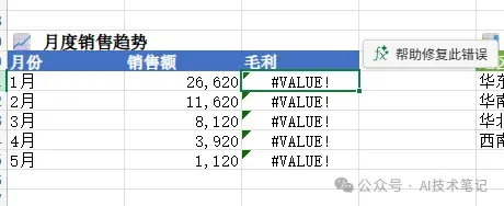 里面还有个小插曲,自动生成的透视表出现了错误,点击错误单元格,右上角会出现“帮助修复此错误”按钮: