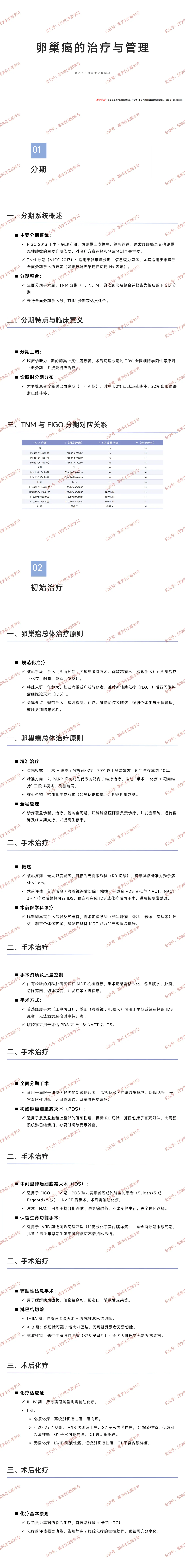 - 规范化:手术 + 全身治疗为核心,特殊人群行新辅助化疗(NACT)后间歇肿瘤细胞减灭术(IDS),强调规范诊疗、个体化及全程管理。
