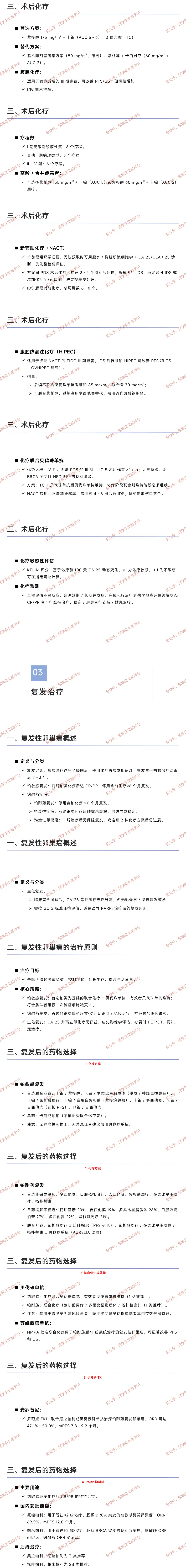- 铂敏感复发:停含铂化疗≥6 个月复发;铂耐药复发:停药<6 个月复发,还包括持续性疾病、难治性卵巢癌。