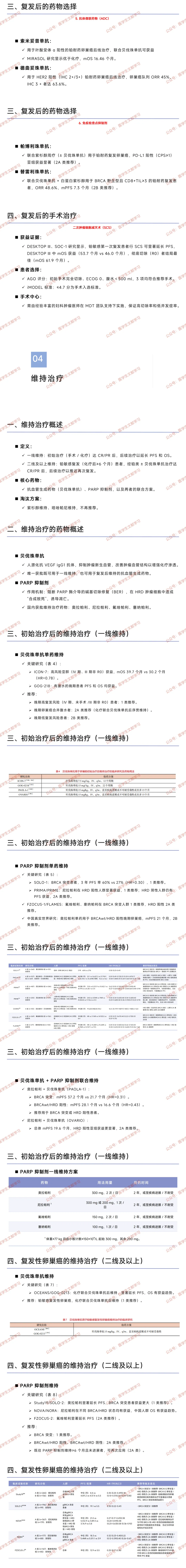 - 核心药物为抗血管生成药、PARP 抑制剂及二者联合,紫杉醇、培唑帕尼维持方案被淘汰。