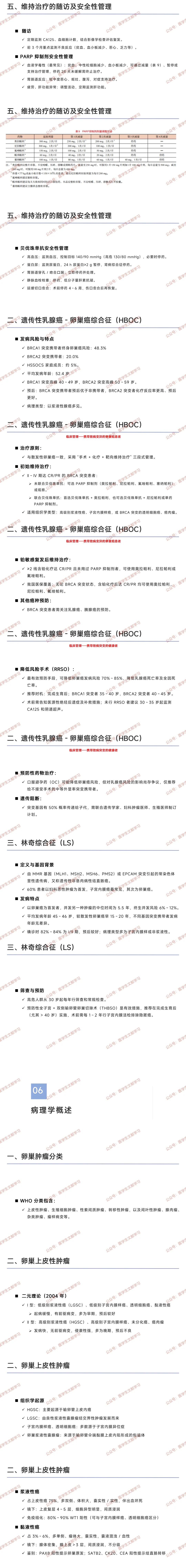 - 肿瘤患者管理:治疗同散发性卵巢癌,BRCA 突变患者初始维持和铂敏感复发后维持有特定药物选择,医保覆盖部分 PARP 抑制剂。