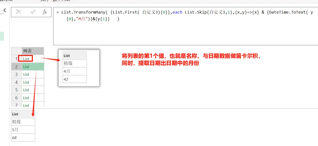 关键一步:将列表的第1个值,也就是名称,与日期数据做笛卡尔积,