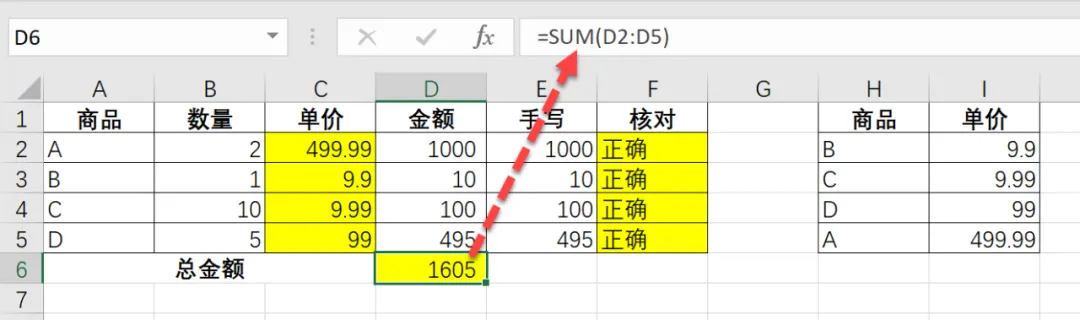 =SUM(D2:D5)