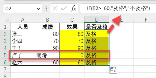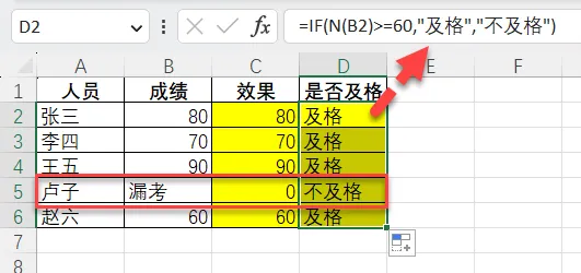 =IF(N(B2)>=60,"及格","不及格")