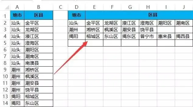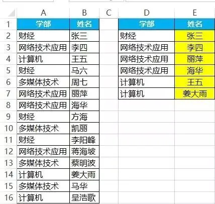 =IFERROR(INDEX(B:B,SMALL(IF(A$2:A$16=D2,ROW($2:$16)),COUNTIF(D$2:D2,D2))),"")