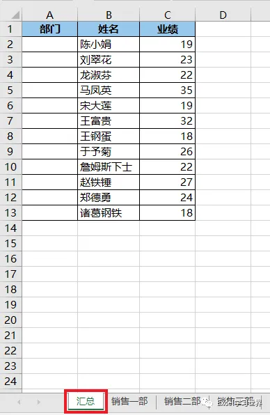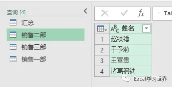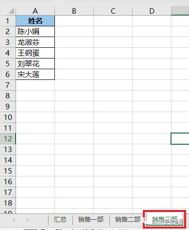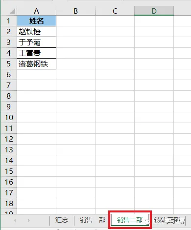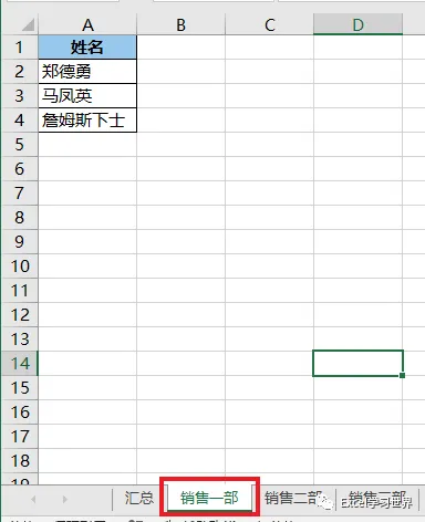 下图 1~3 是以部门名称命名的工作表,每个工作表中是本部门的员工姓名列表。