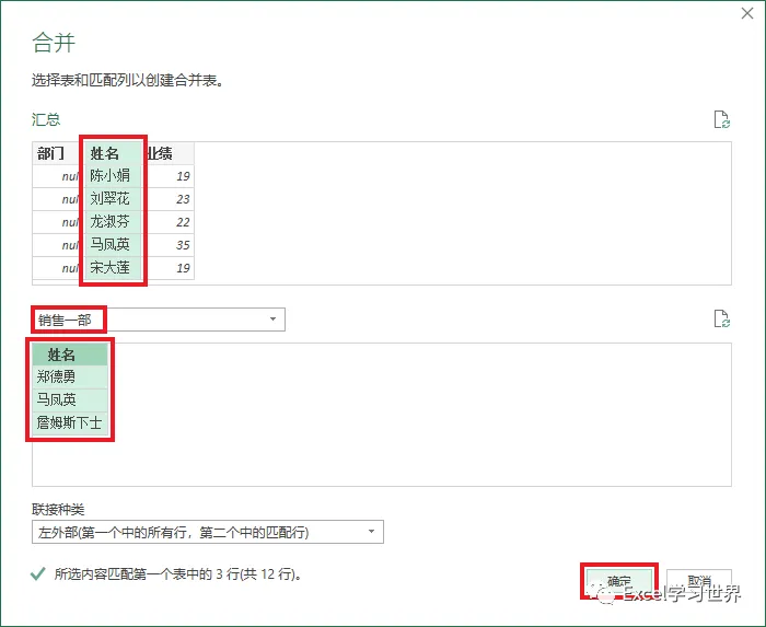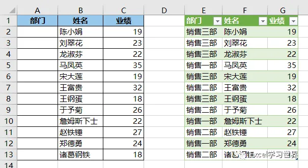 请根据下图 4 中的姓名匹配出对应的部门,效果如下图 5 所示。