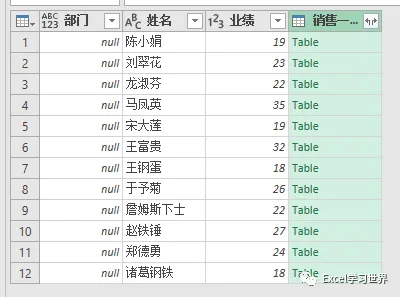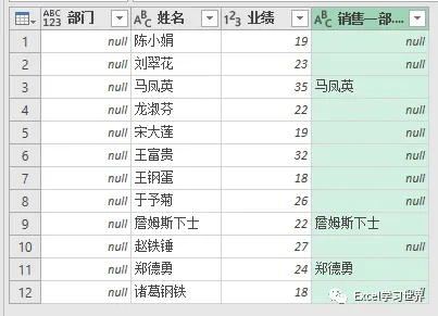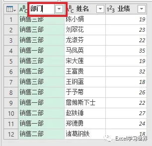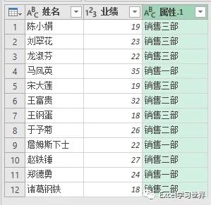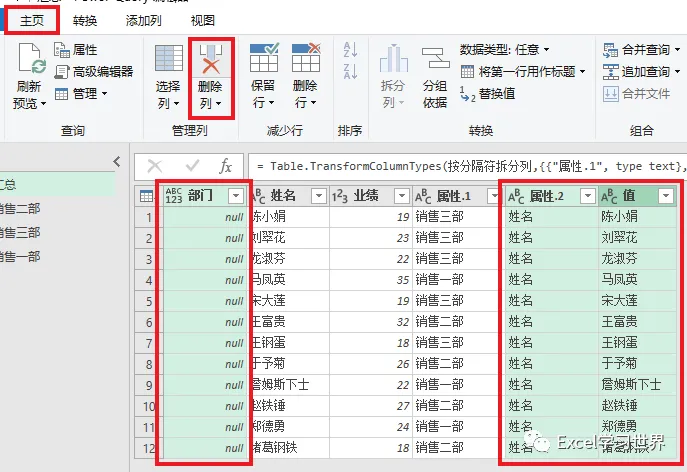 14. 将“属性”列拖动到最左边 --> 将其标题修改为“部门”