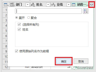 8. 点开“销售一部”旁边的展开按钮 --> 保留默认设置 --> 点击“确定”