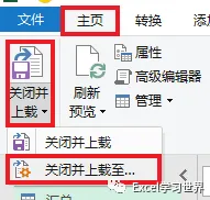 15. 选择菜单栏的“主页”-->“关闭并上载”-->“关闭并上载至”