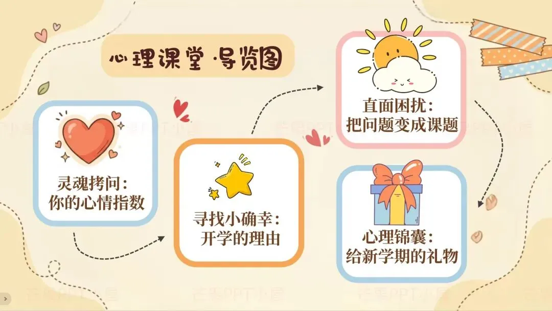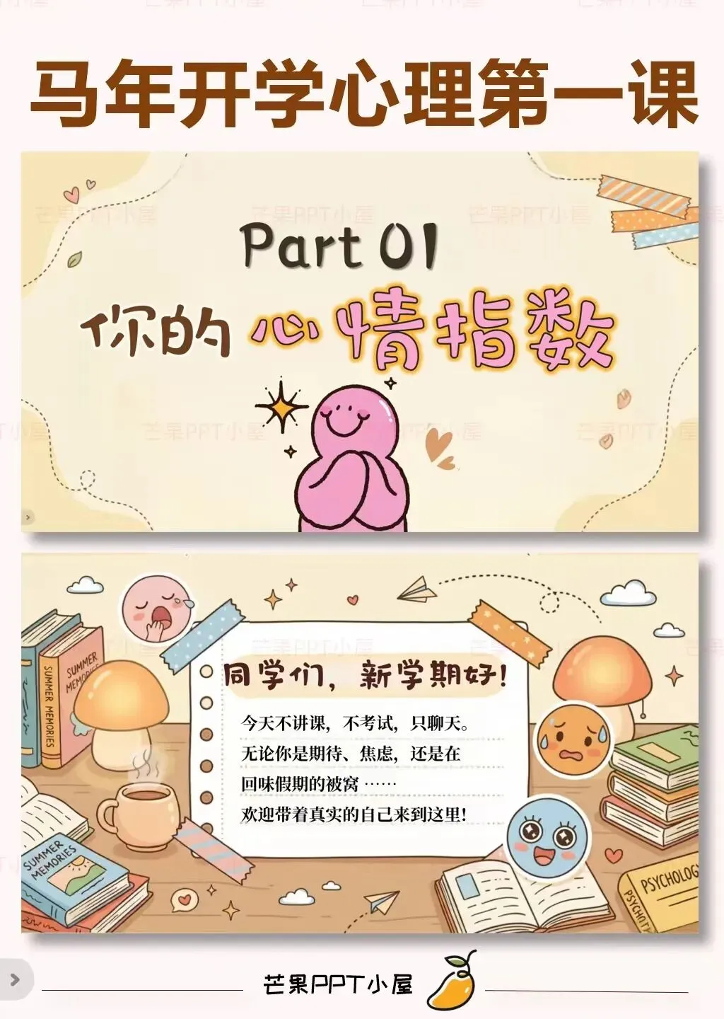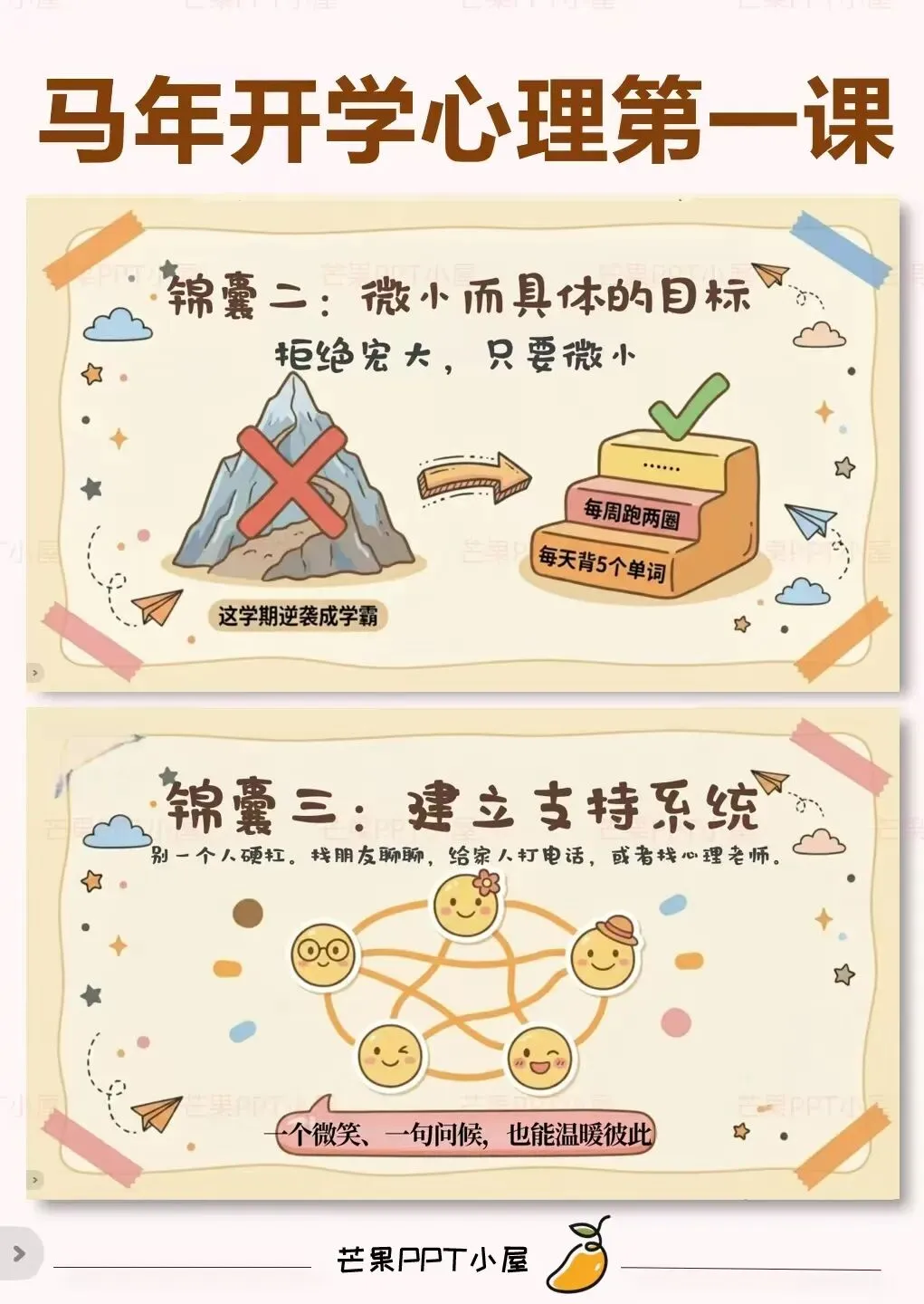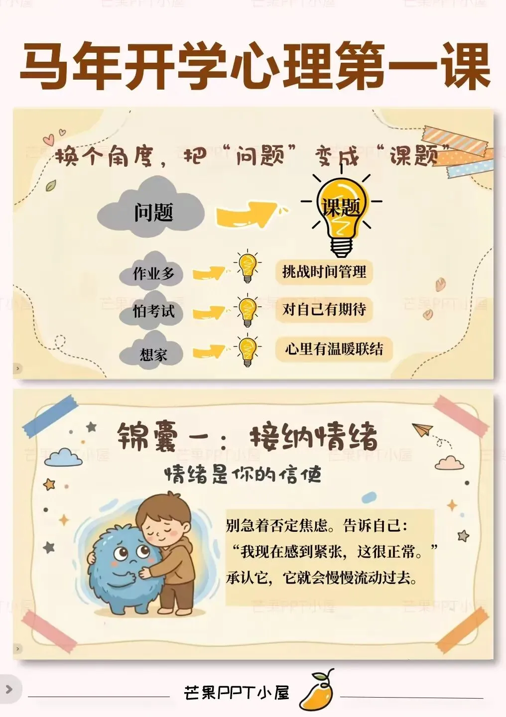 • 适用场景:适合小学高年级到初中,开学第一周心理课/班会课使用等等相关主题演讲~