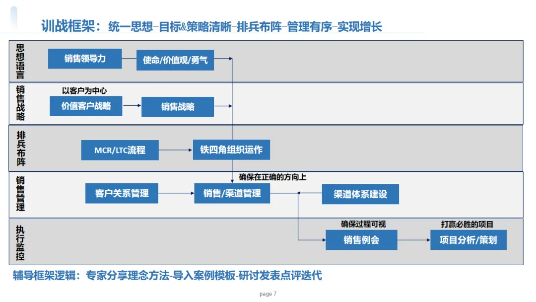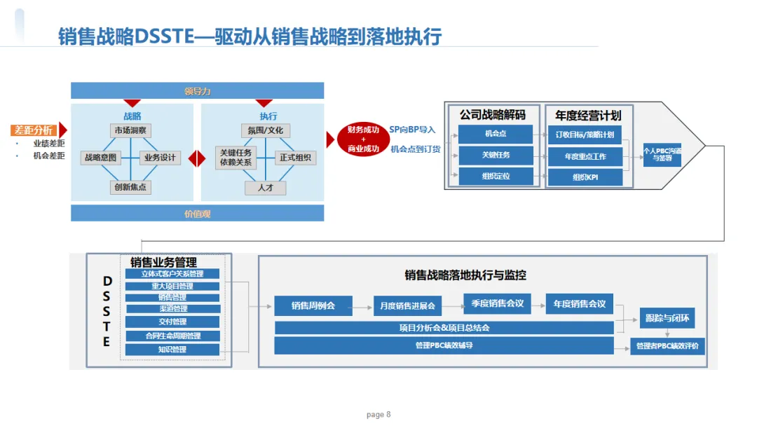 这一能力建设涉及到从销售战略的制定到执行的各个环节,包括但不限于销售战略的DSSTE模型、BLM战略领导力模型、铁四角组织运作模式、客户关系拓展与管理的立体式体系、以及LTC(Lead to Cash)流程的端到端管理。
