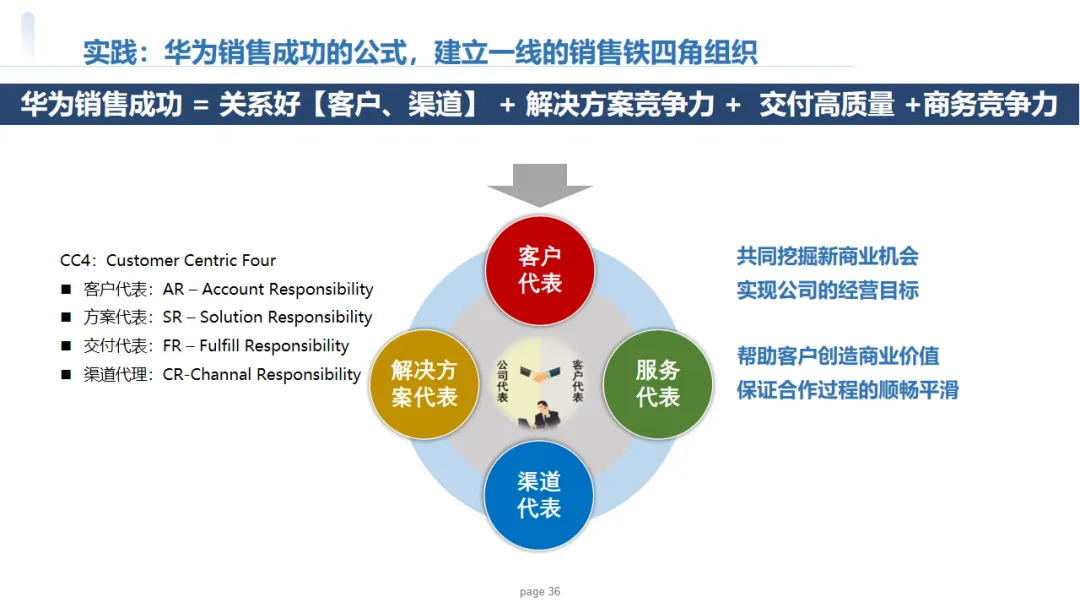 华为的这种以客户为中心的销售方法论,不仅强化了销售团队的战斗力,也促进了企业持续的业务增长和市场竞争力的提升。