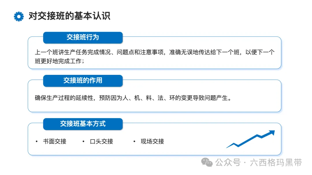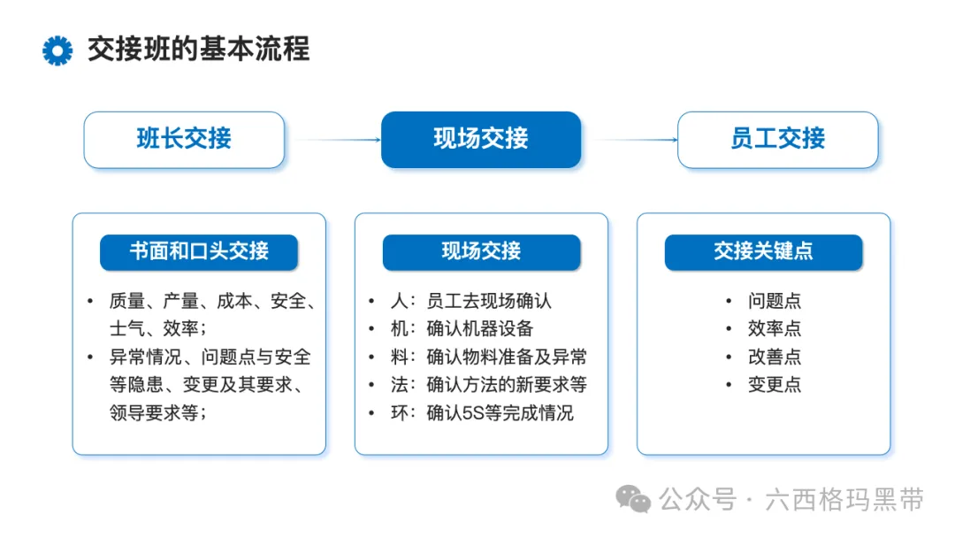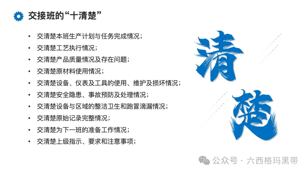 交接班是确保生产过程连续性的重要环节。通过有效的交接班,可以确保生产任务的顺利进行,预防因人员、设备、物料、方法和环境的变更导致的问题。