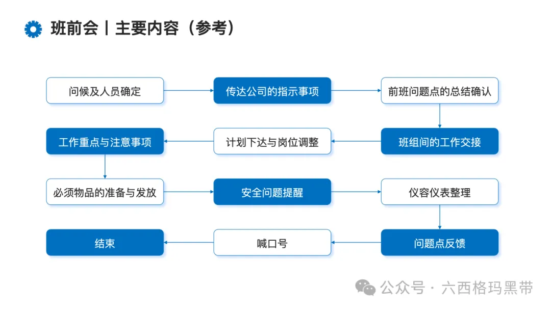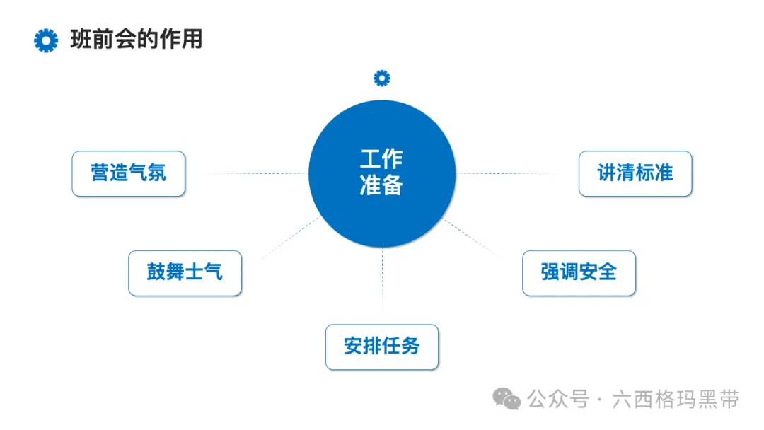 班前会是每天工作开始前的重要环节,其主要作用包括:
