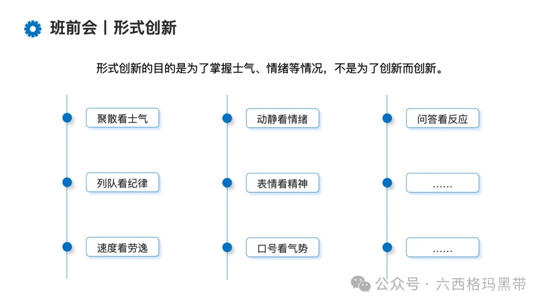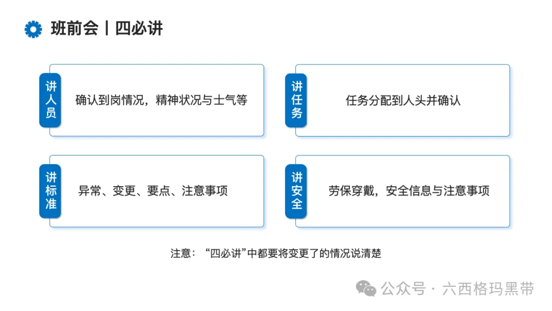 班前会的形式可以创新,以更好地掌握员工的士气、情绪等情况: