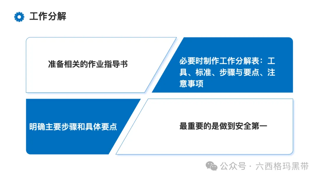 工作分解是工作教导的基础,通过将复杂的工作分解为简单的步骤,可以帮助员工更好地理解和掌握工作内容。