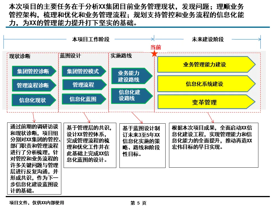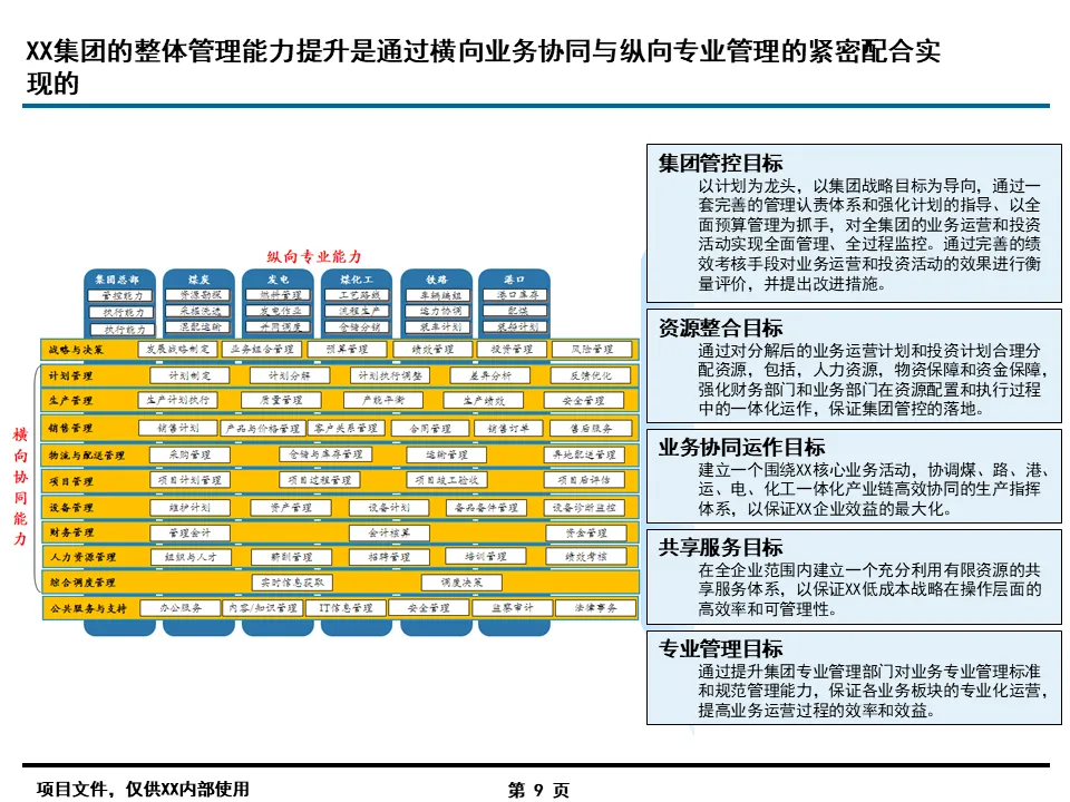 这份由埃某哲打造的集团流程优化与信息化总体规划报告,以 “再造某华,五年规模翻番” 为目标,构建了 “集团管控、资源整合、业务协同、共享服务、专业管理” 五大核心能力的一体化解决方案。