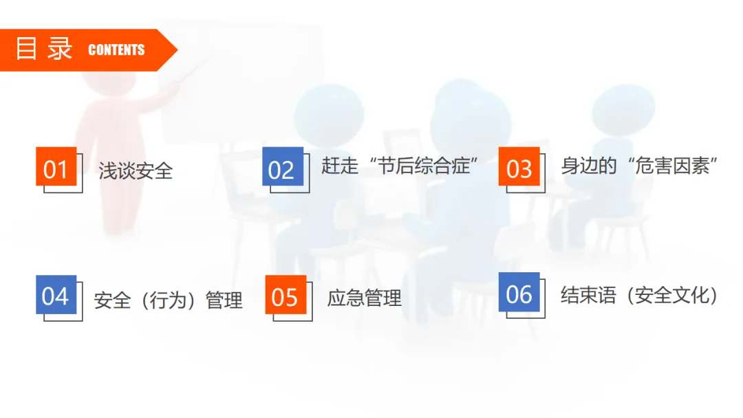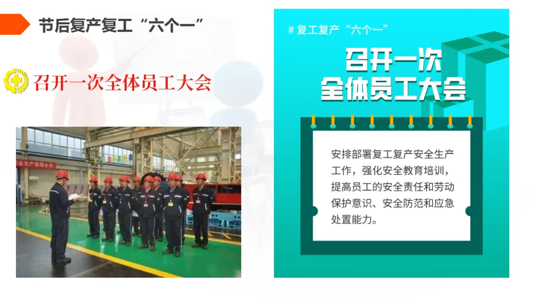 也就是我们今天正在做的,进行全员安全教育,强调复工后的安全注意事项。